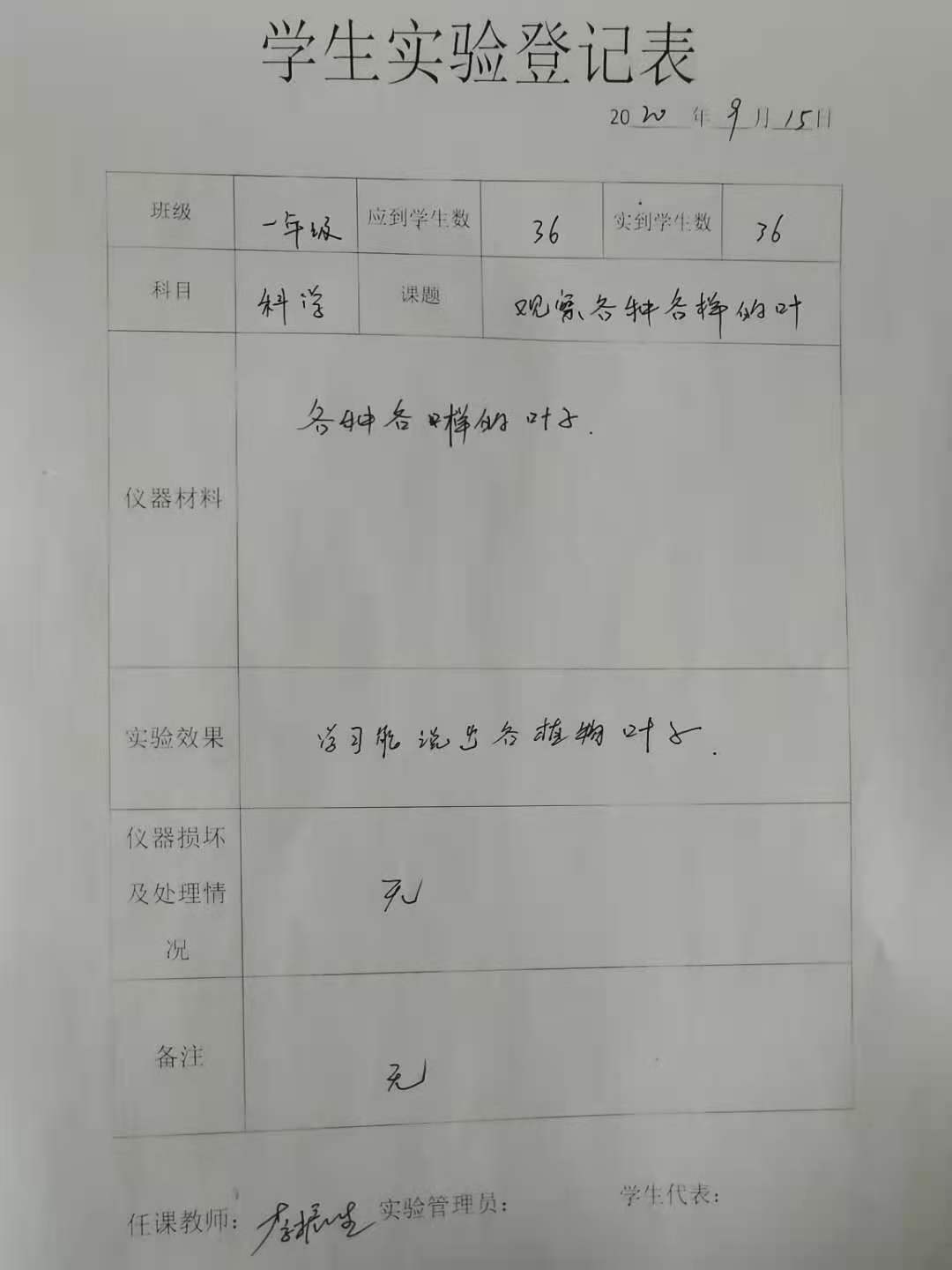 实验登记表