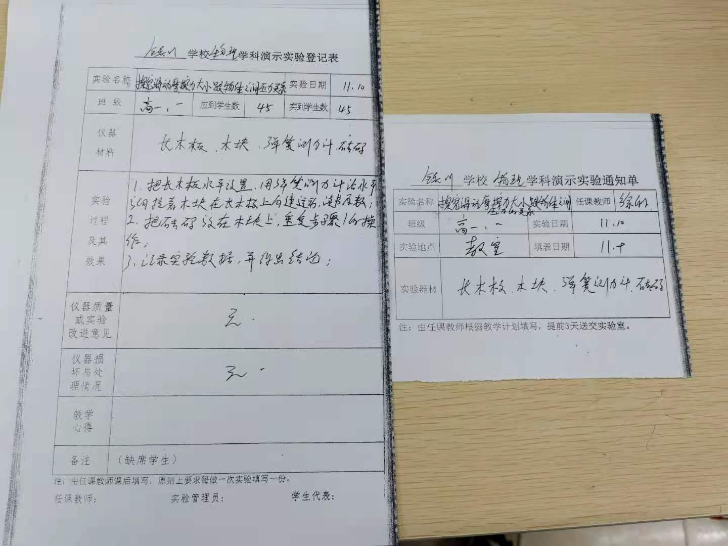 实验登记表