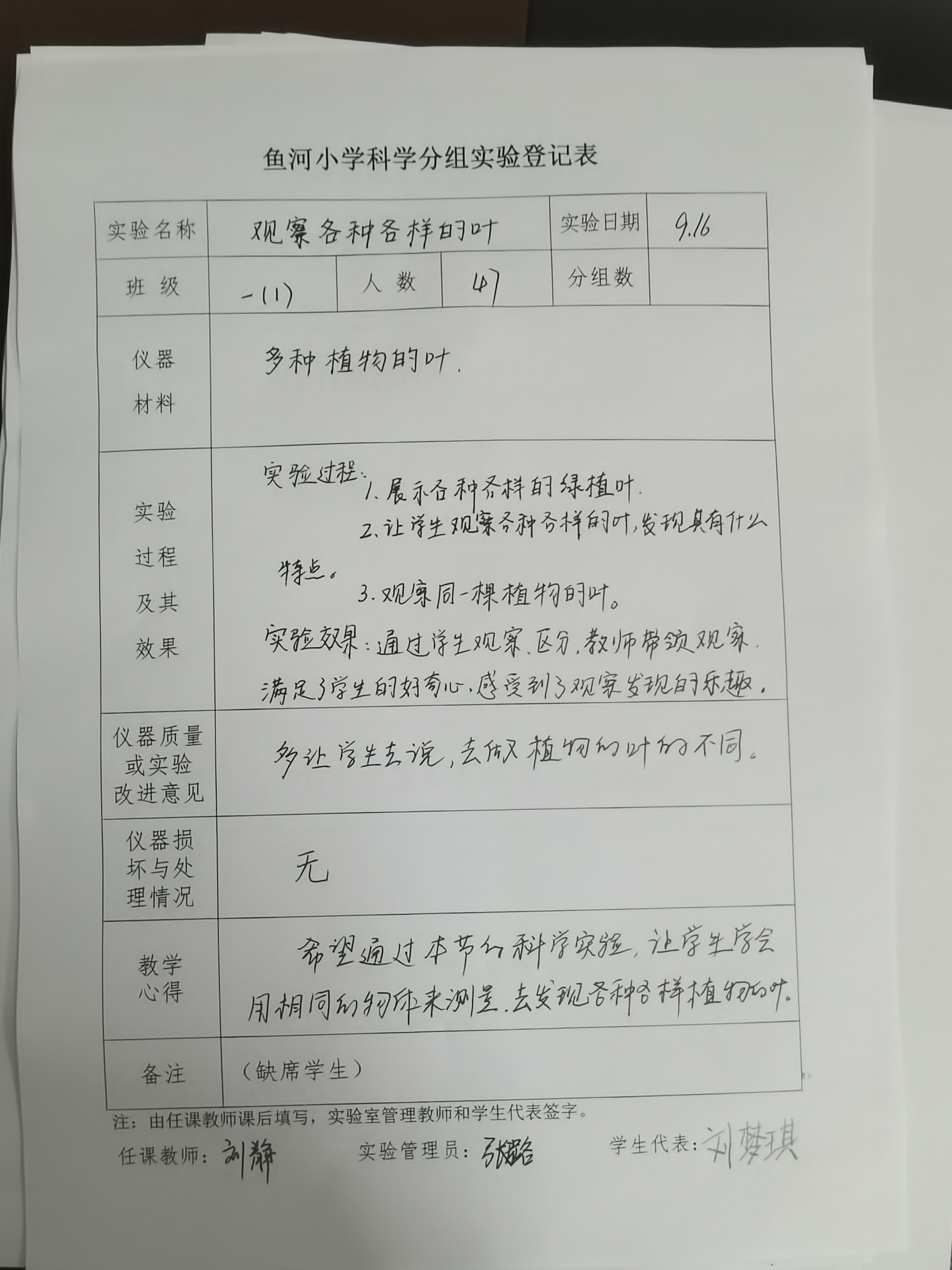 实验登记表