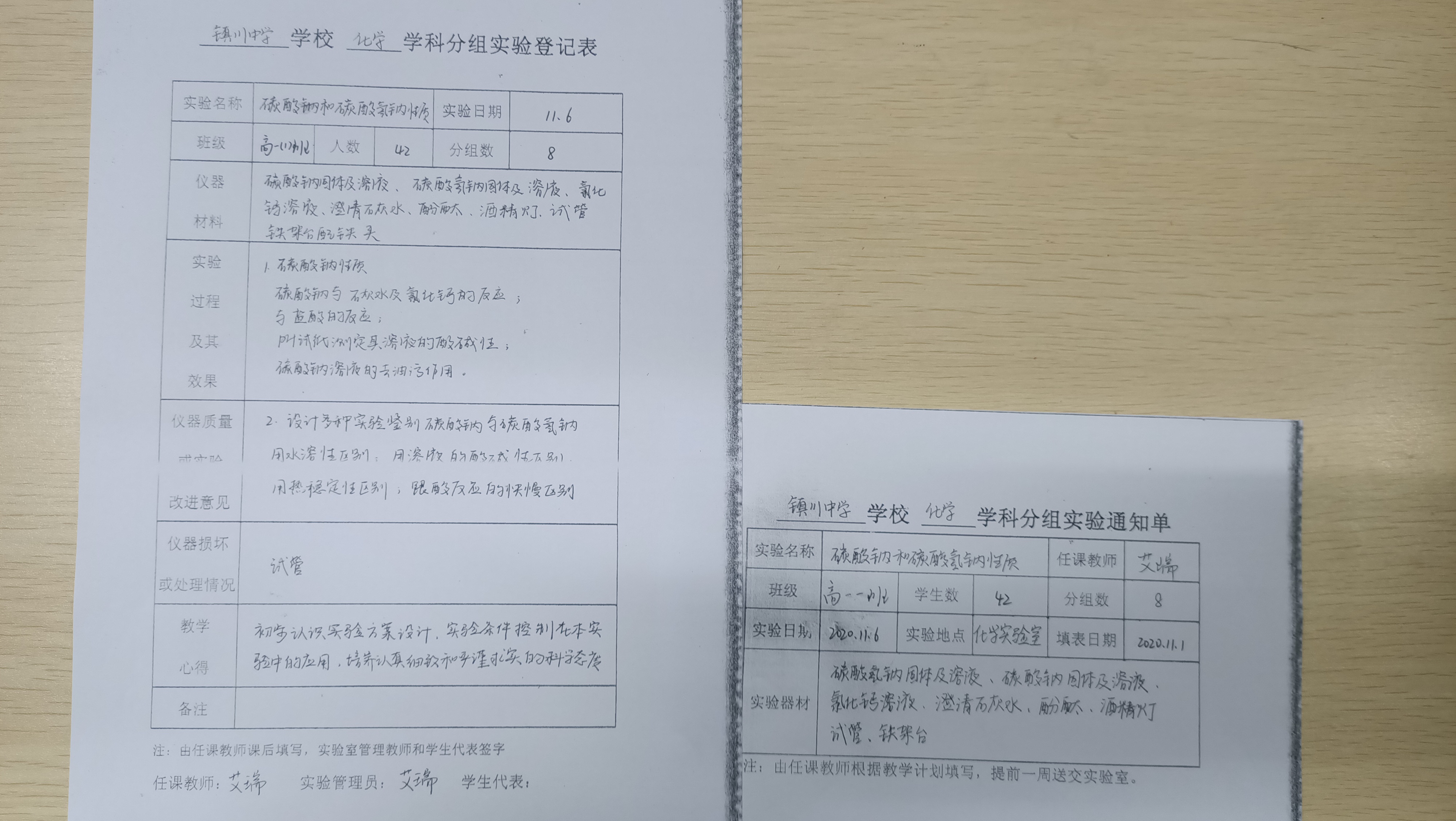 实验登记表