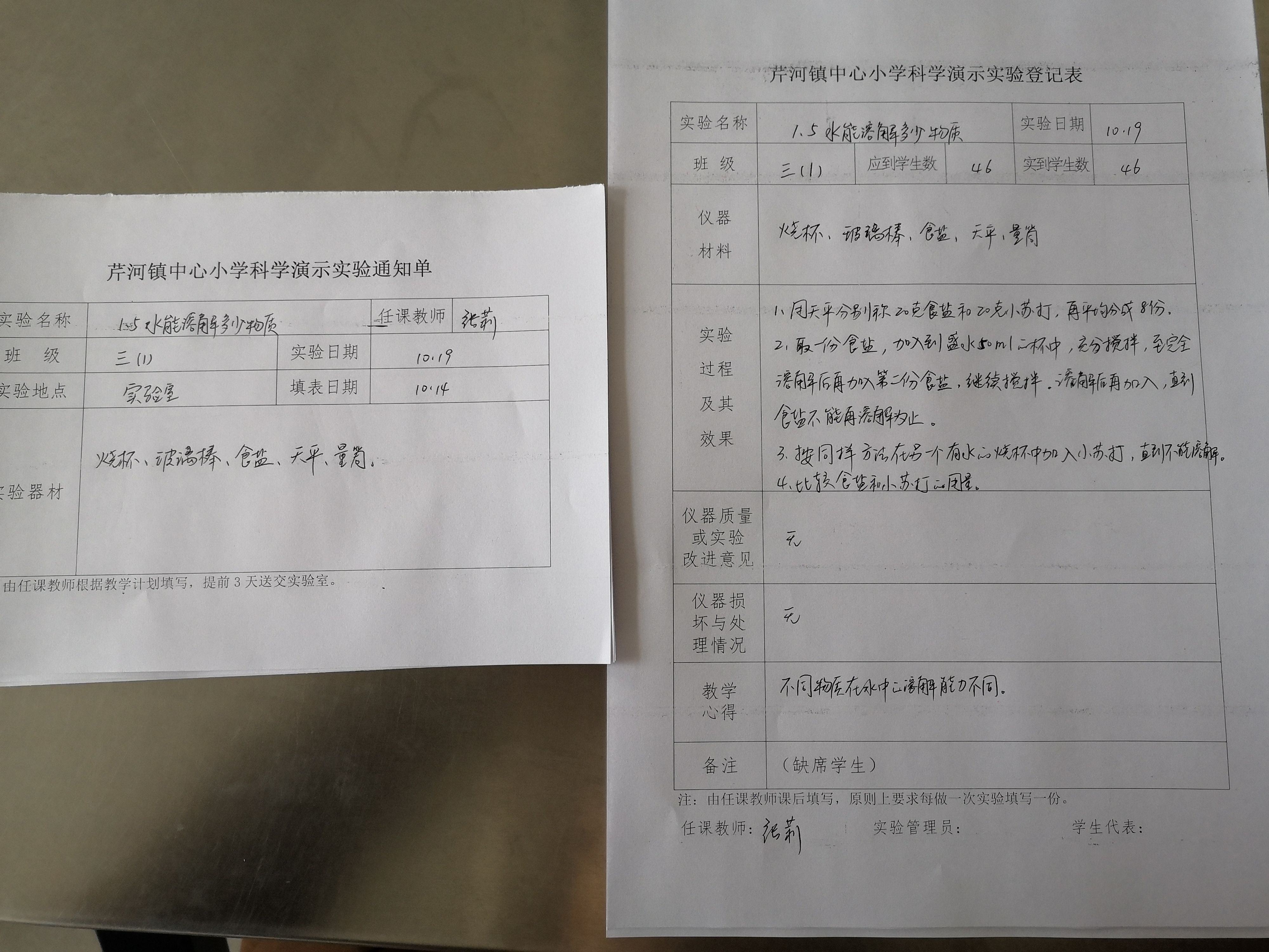 实验登记表