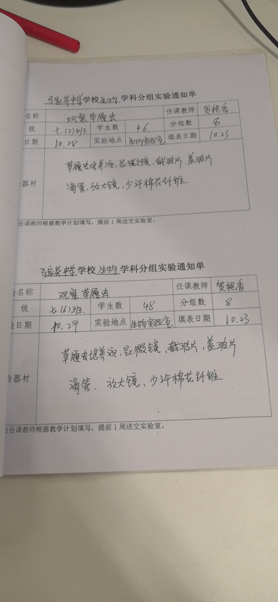 实验登记表