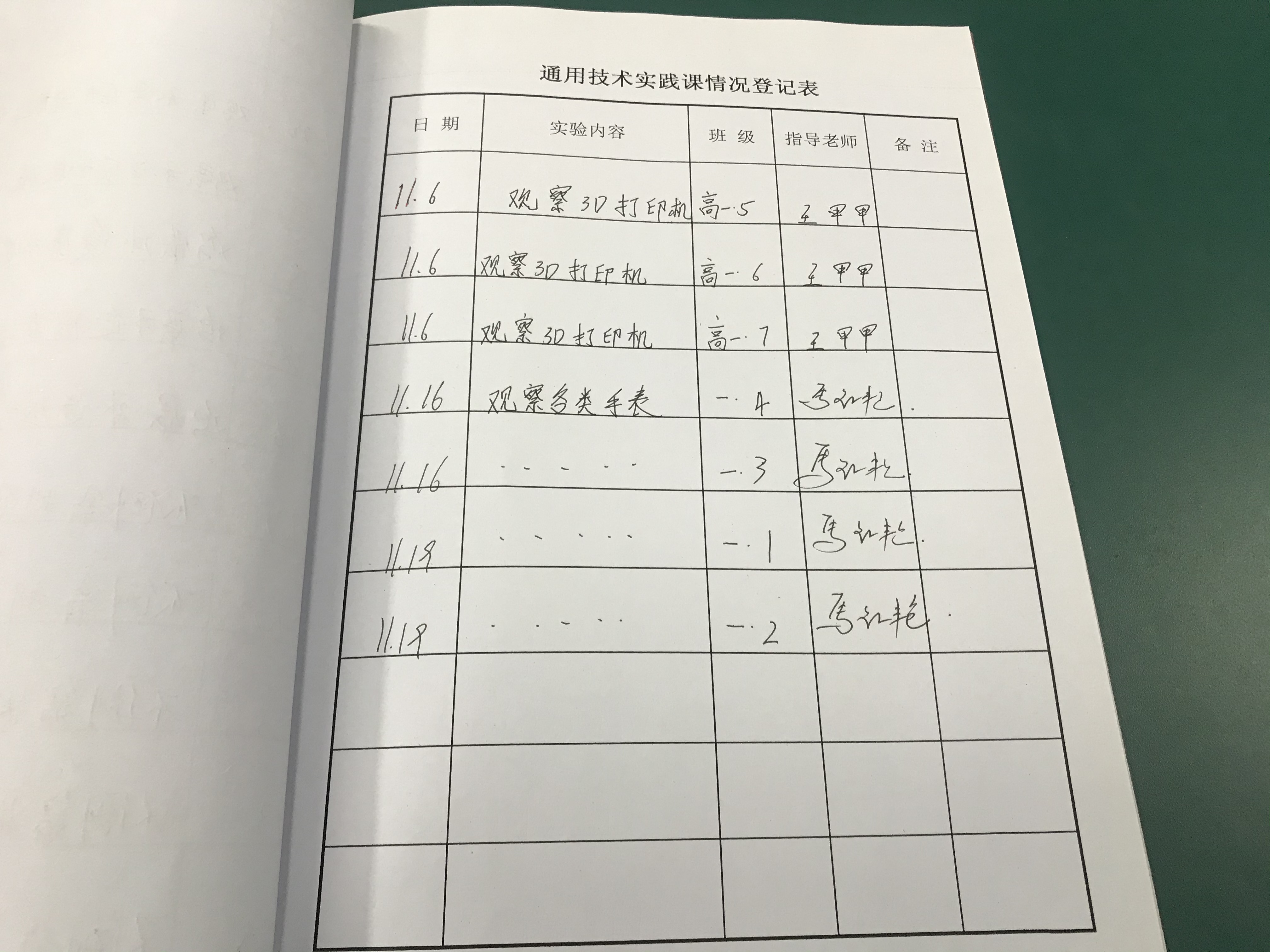 实验登记表