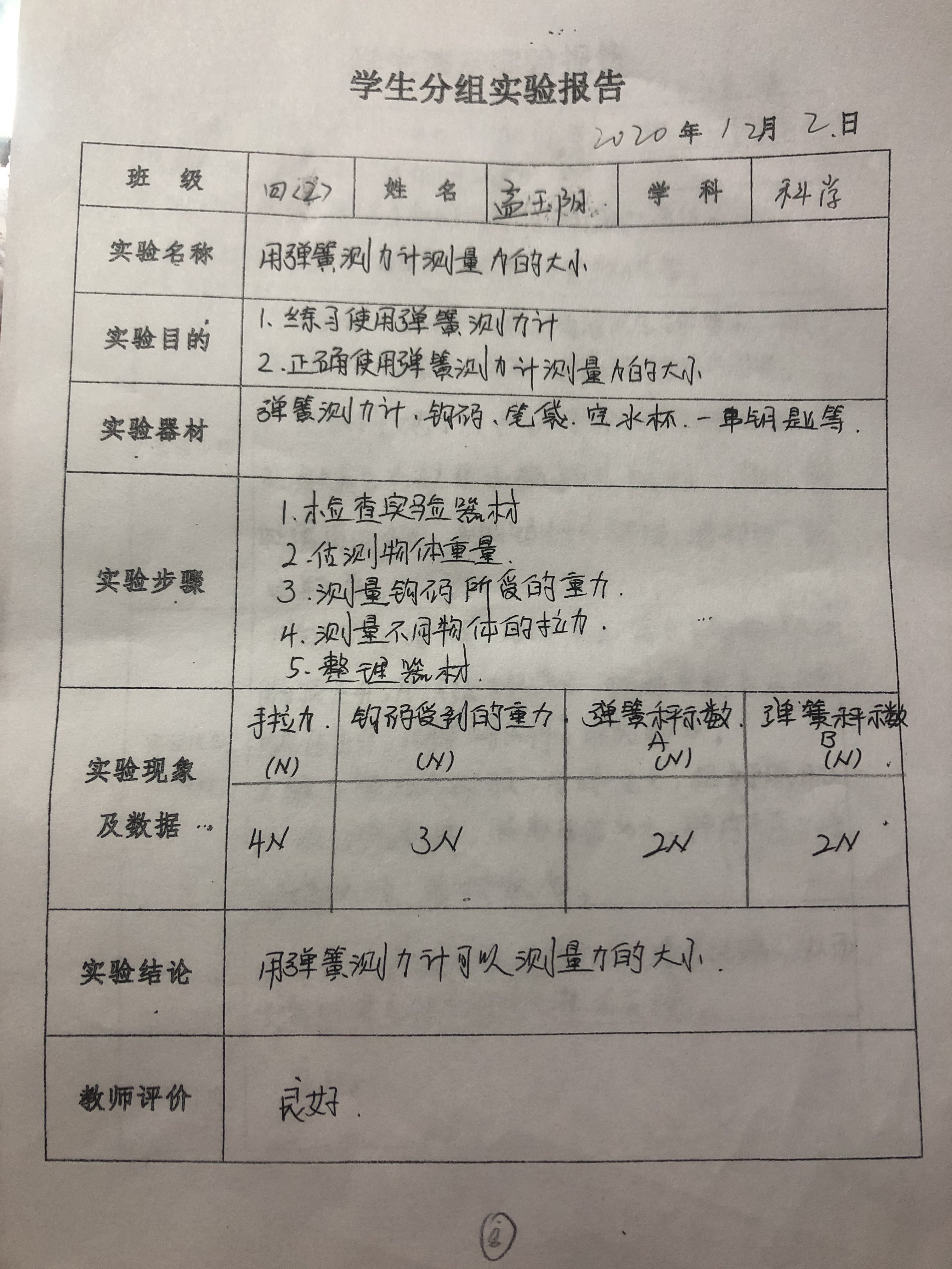 用弹簧测力计测量力的大小