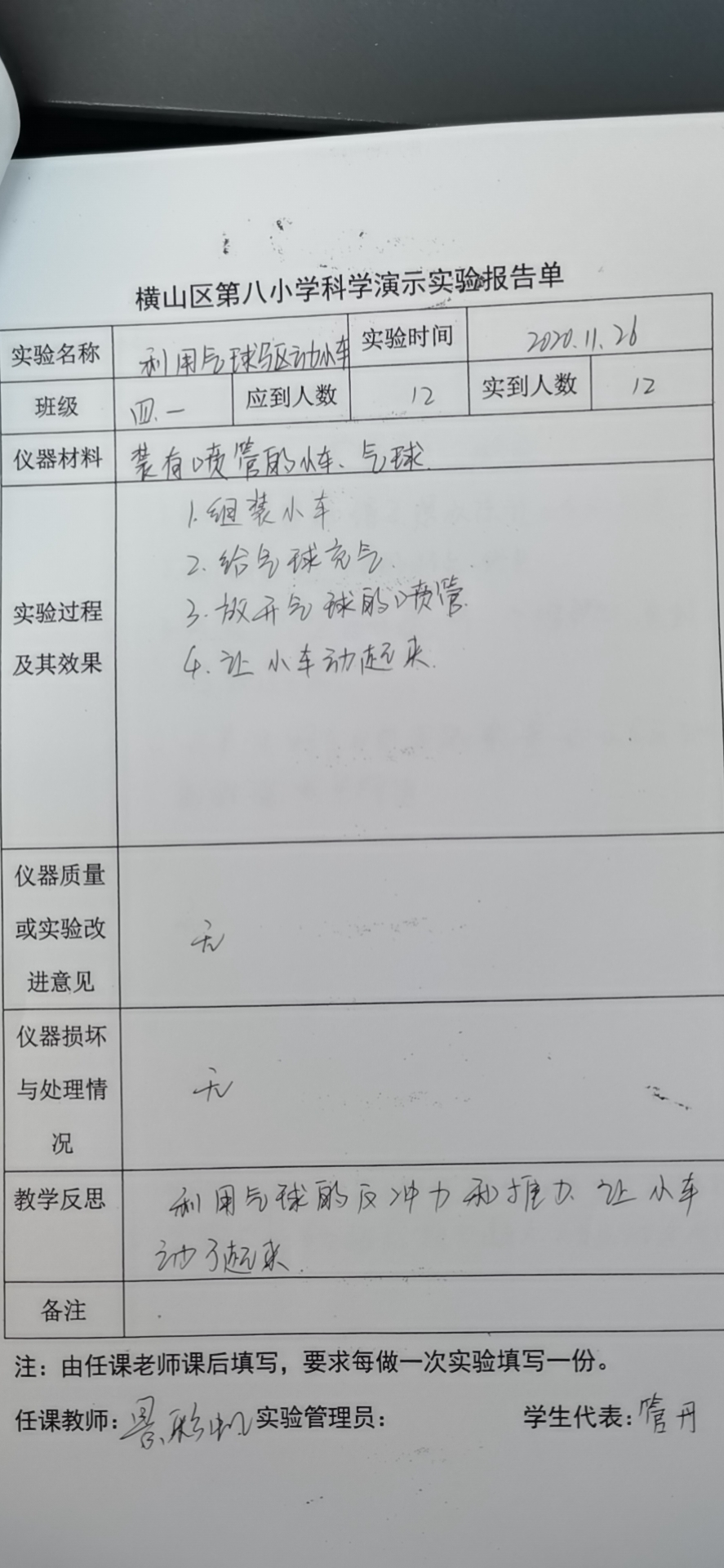 利用气球驱动小车