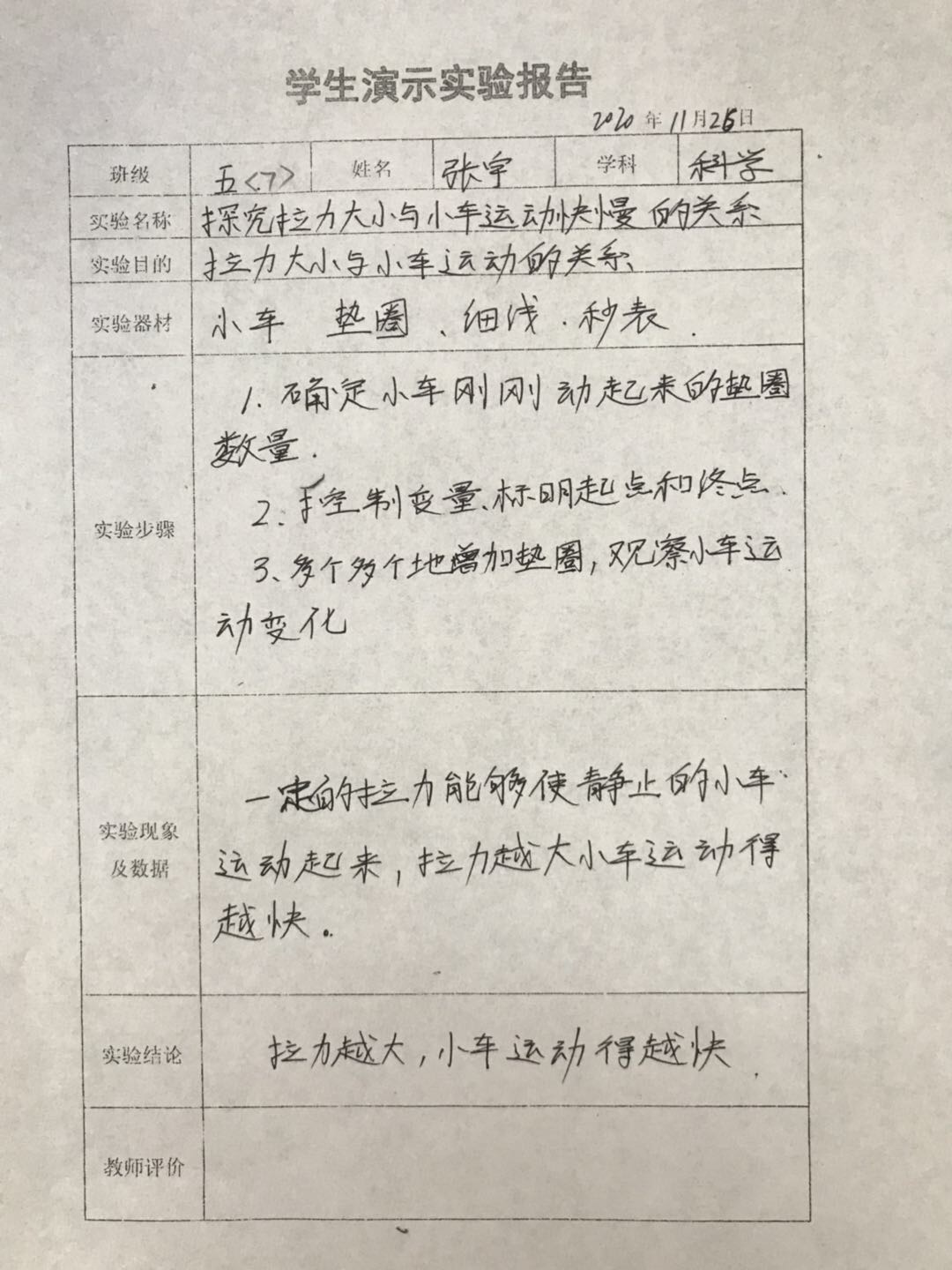探究拉力大小与小车运动快慢的关系