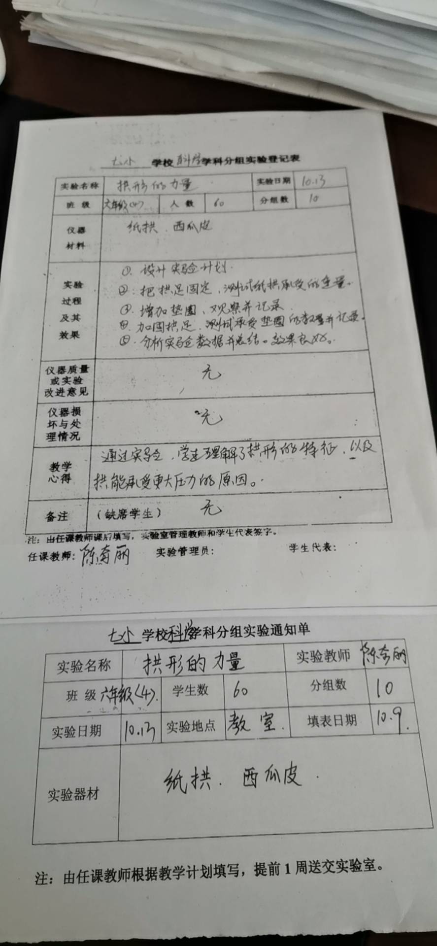 实验登记表