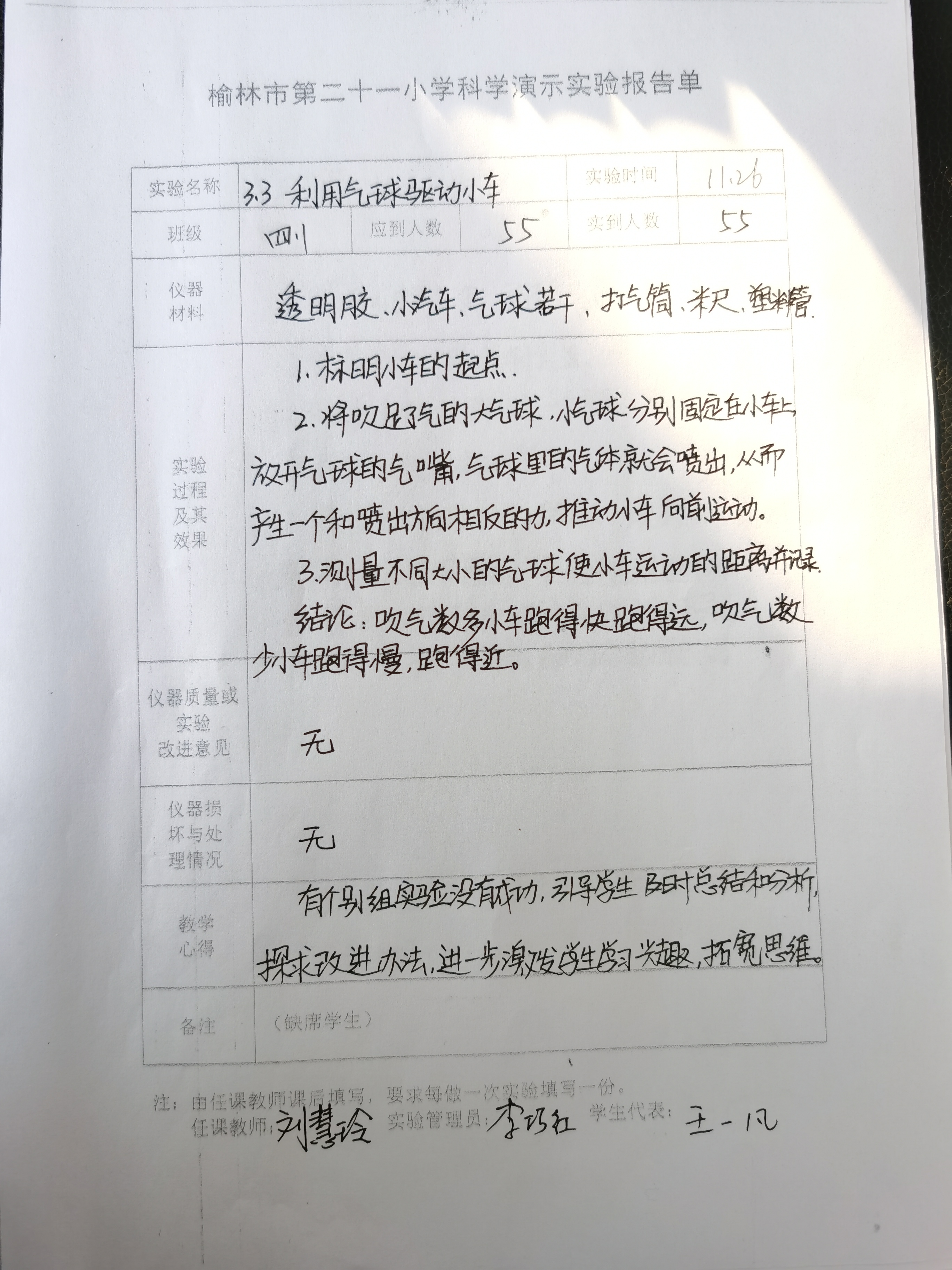 利用气球驱动小车