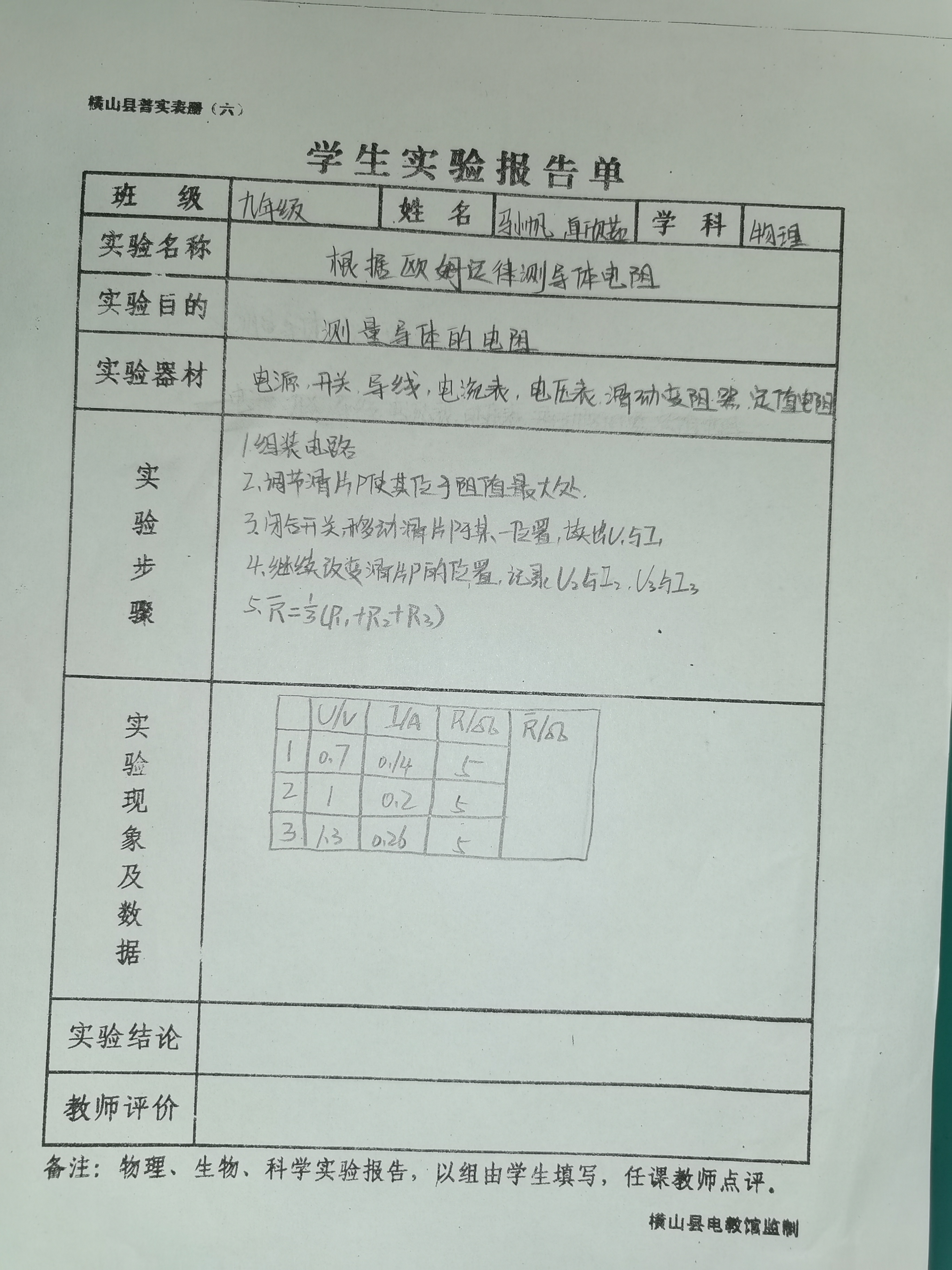 根据欧姆定律测导体的电阻
