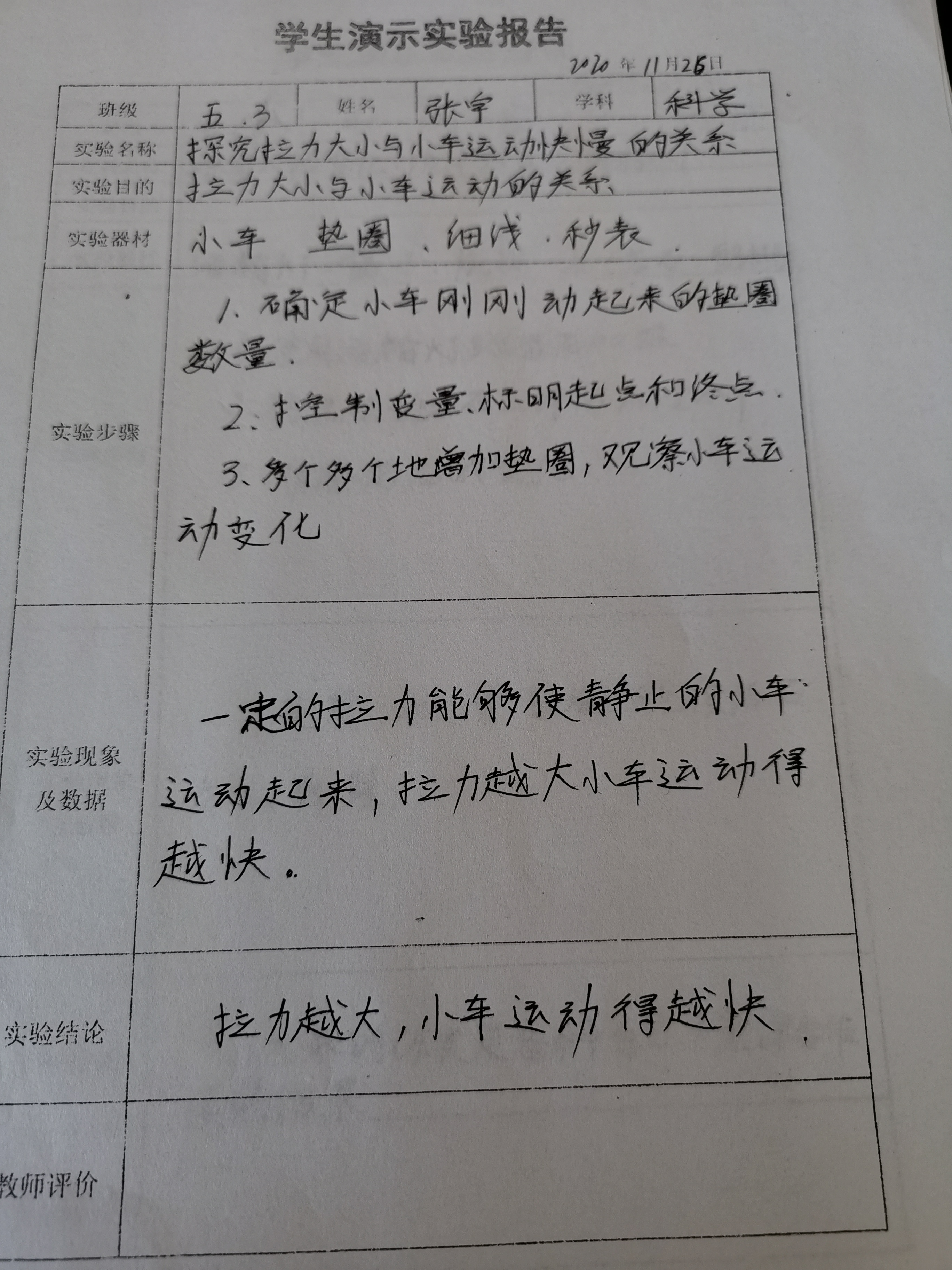 拉力大小与小车运动的关系