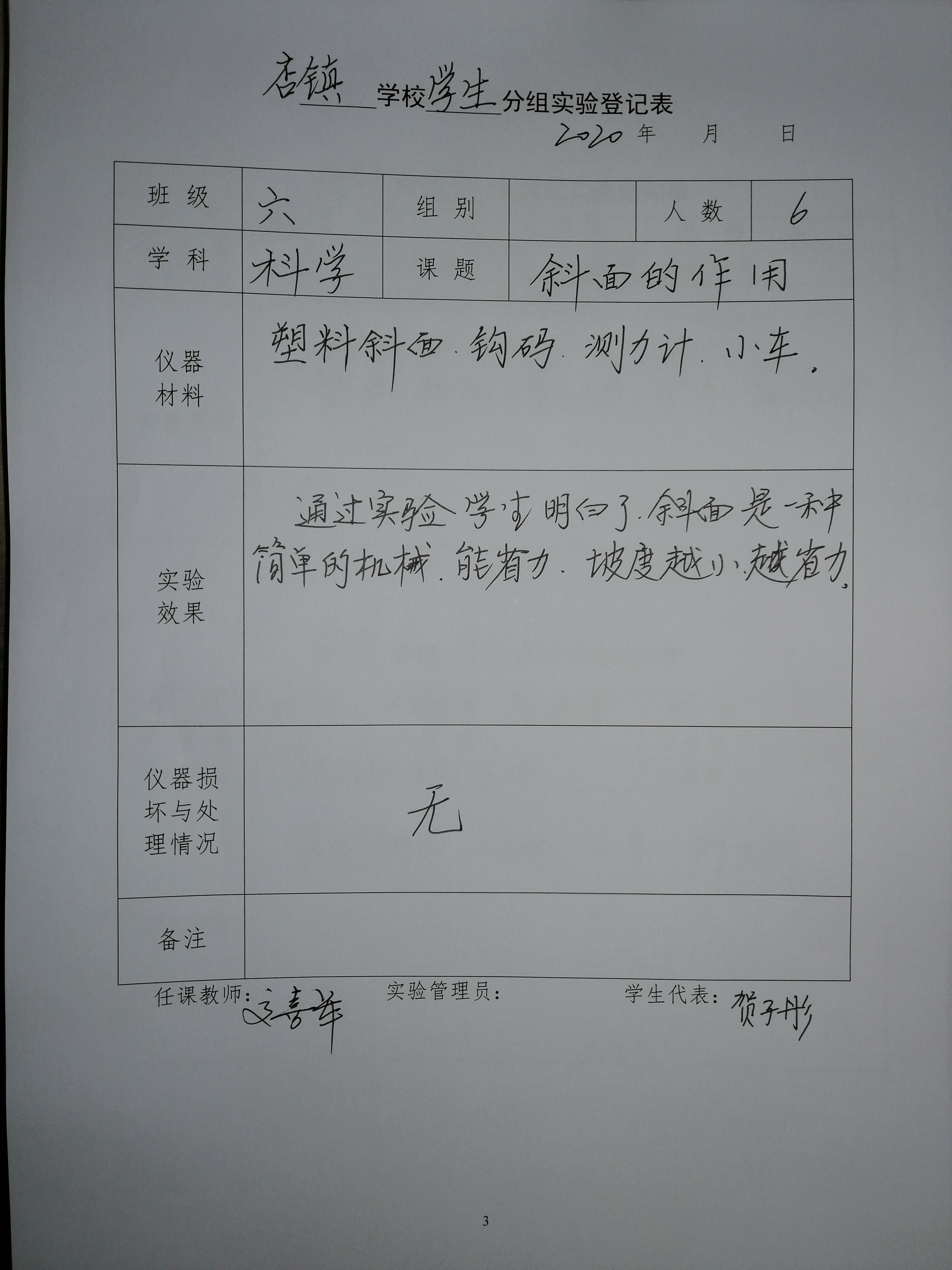 实验登记表