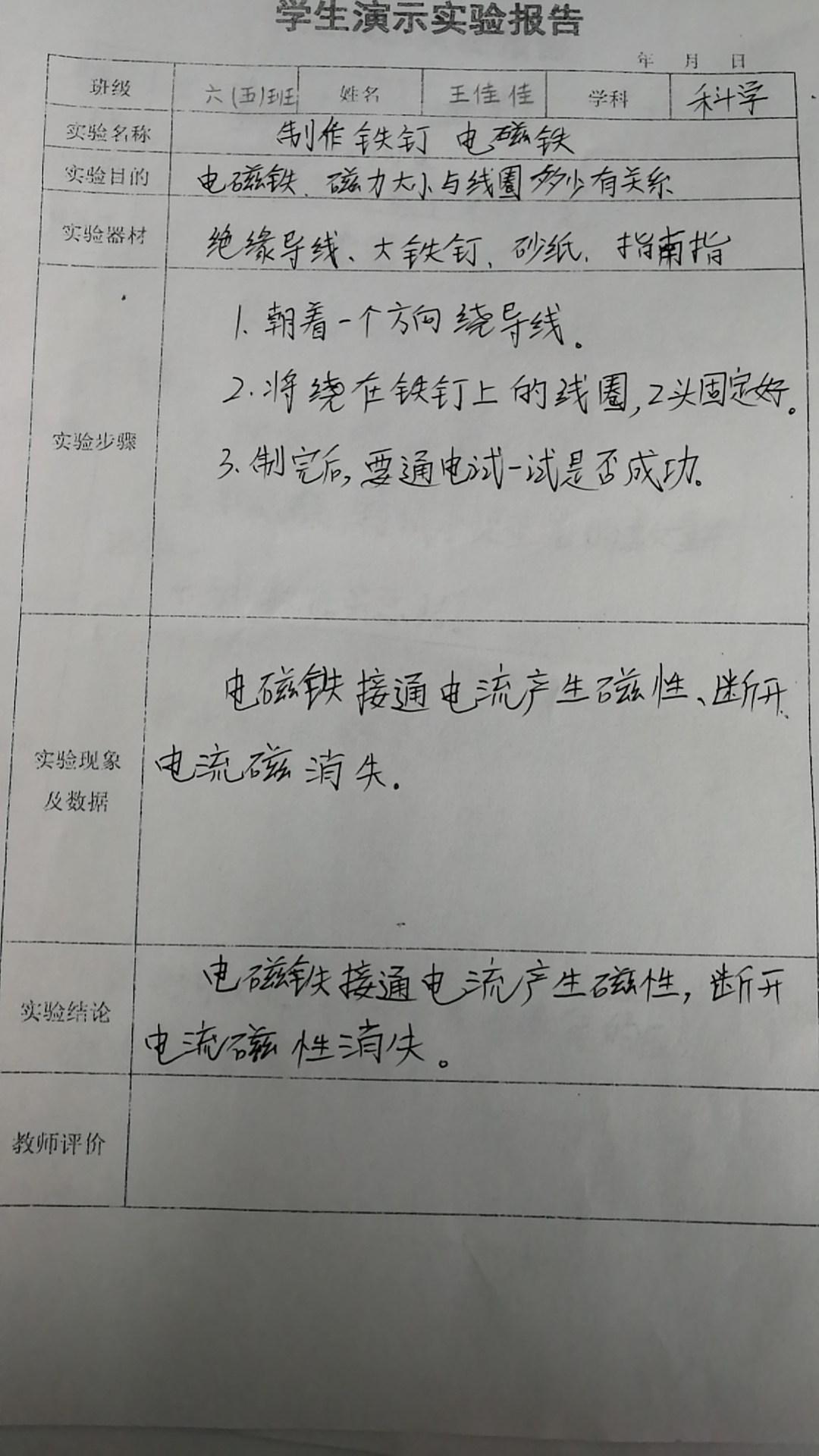 电磁铁、磁力大小与线圈的关系