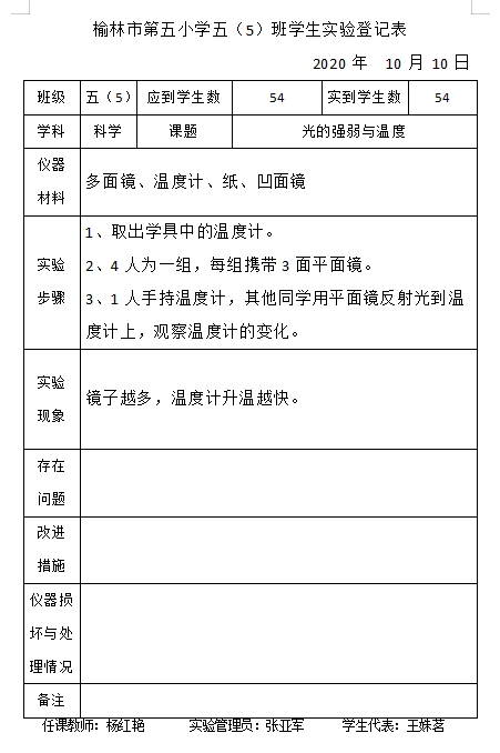 实验登记表