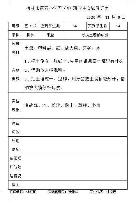实验登记表