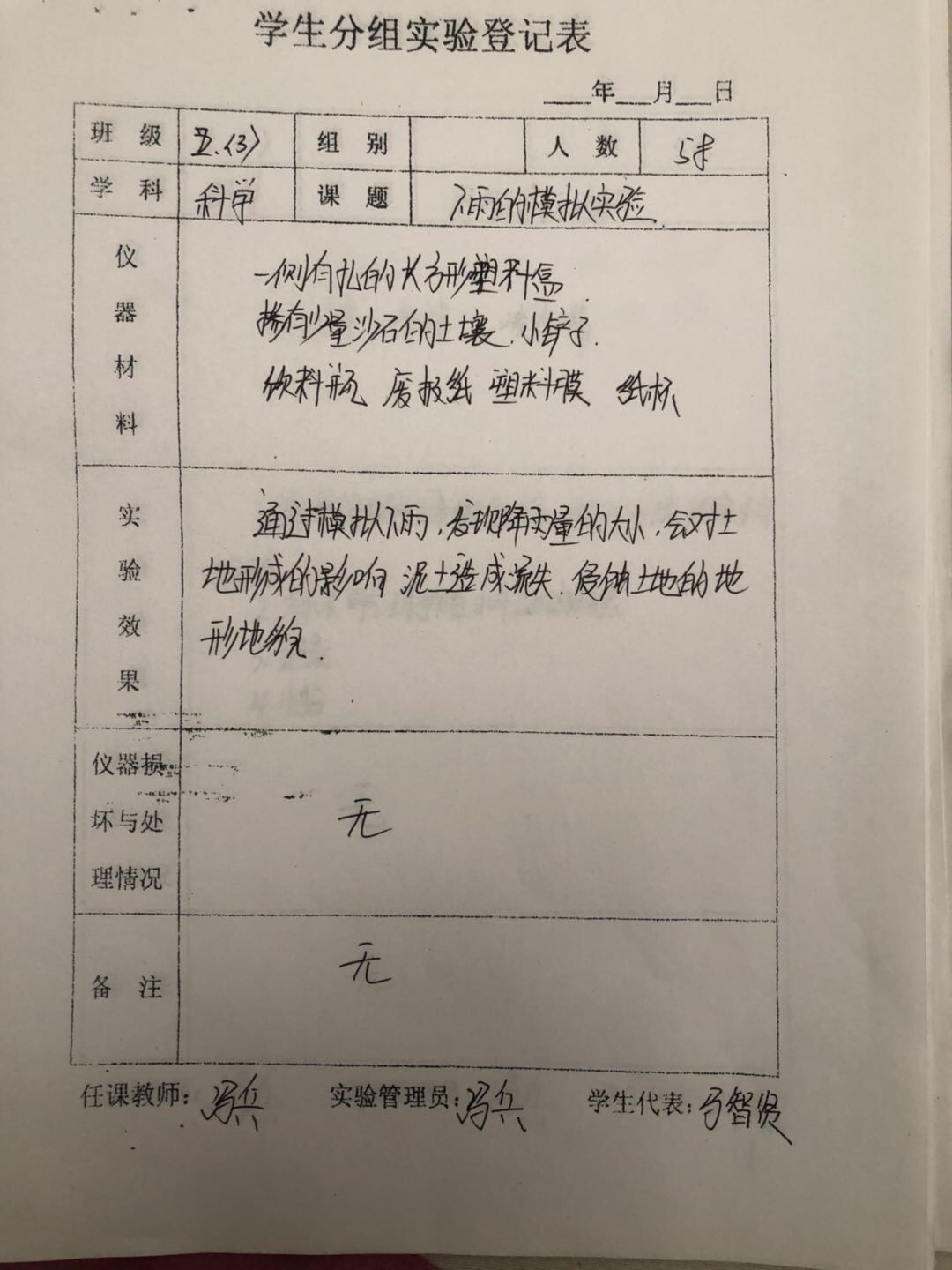 实验登记表