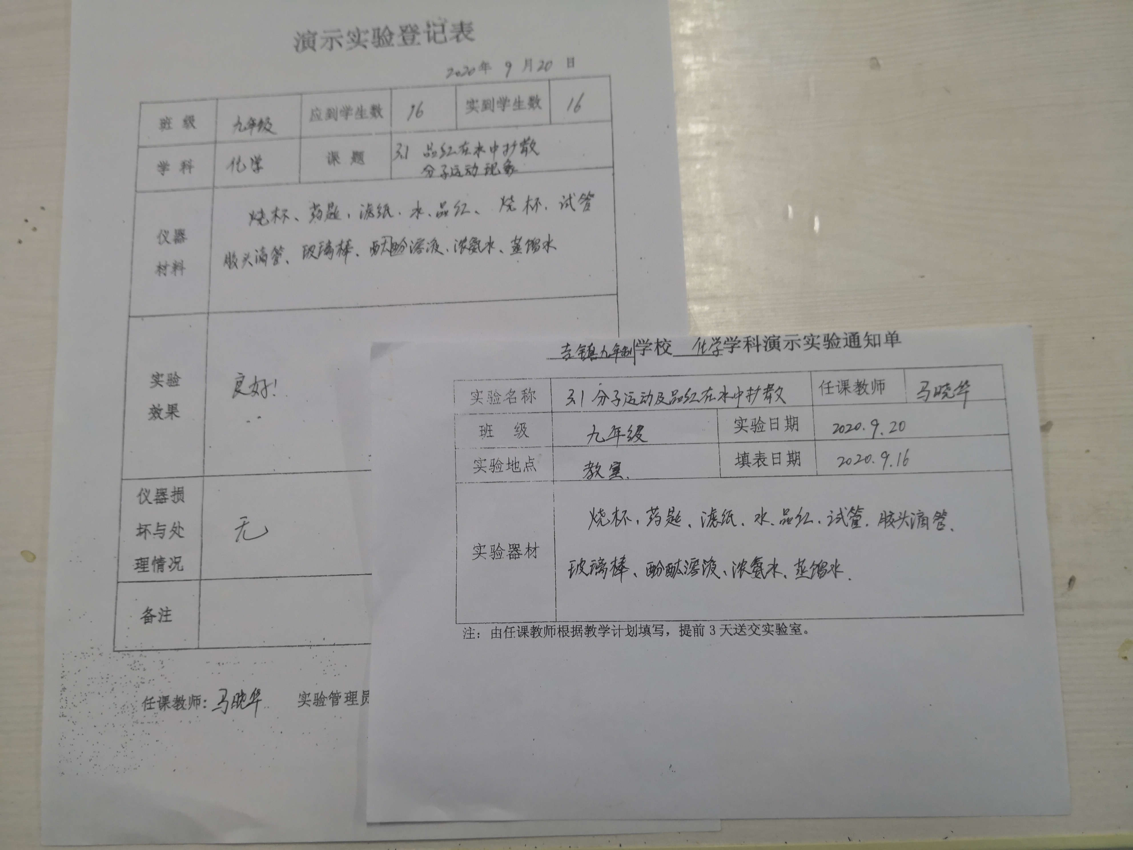 实验登记表