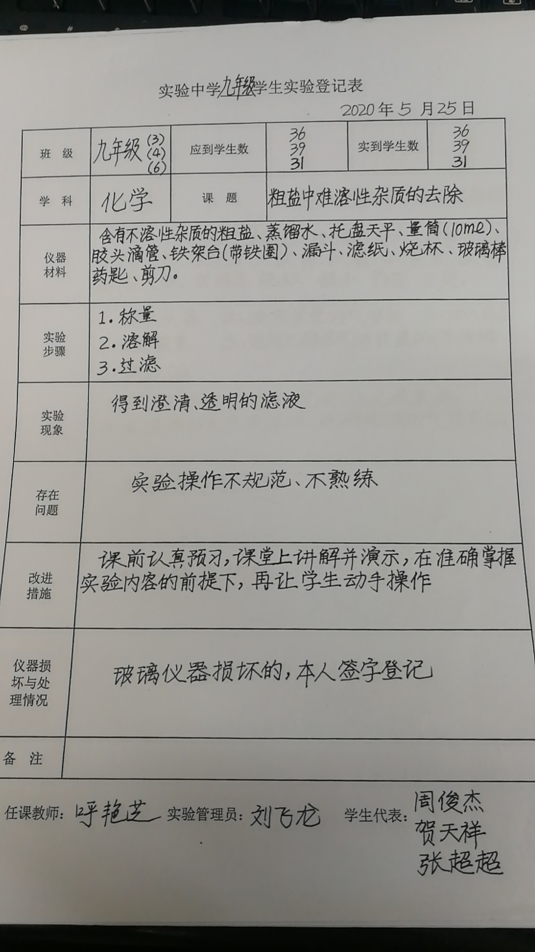 实验登记表