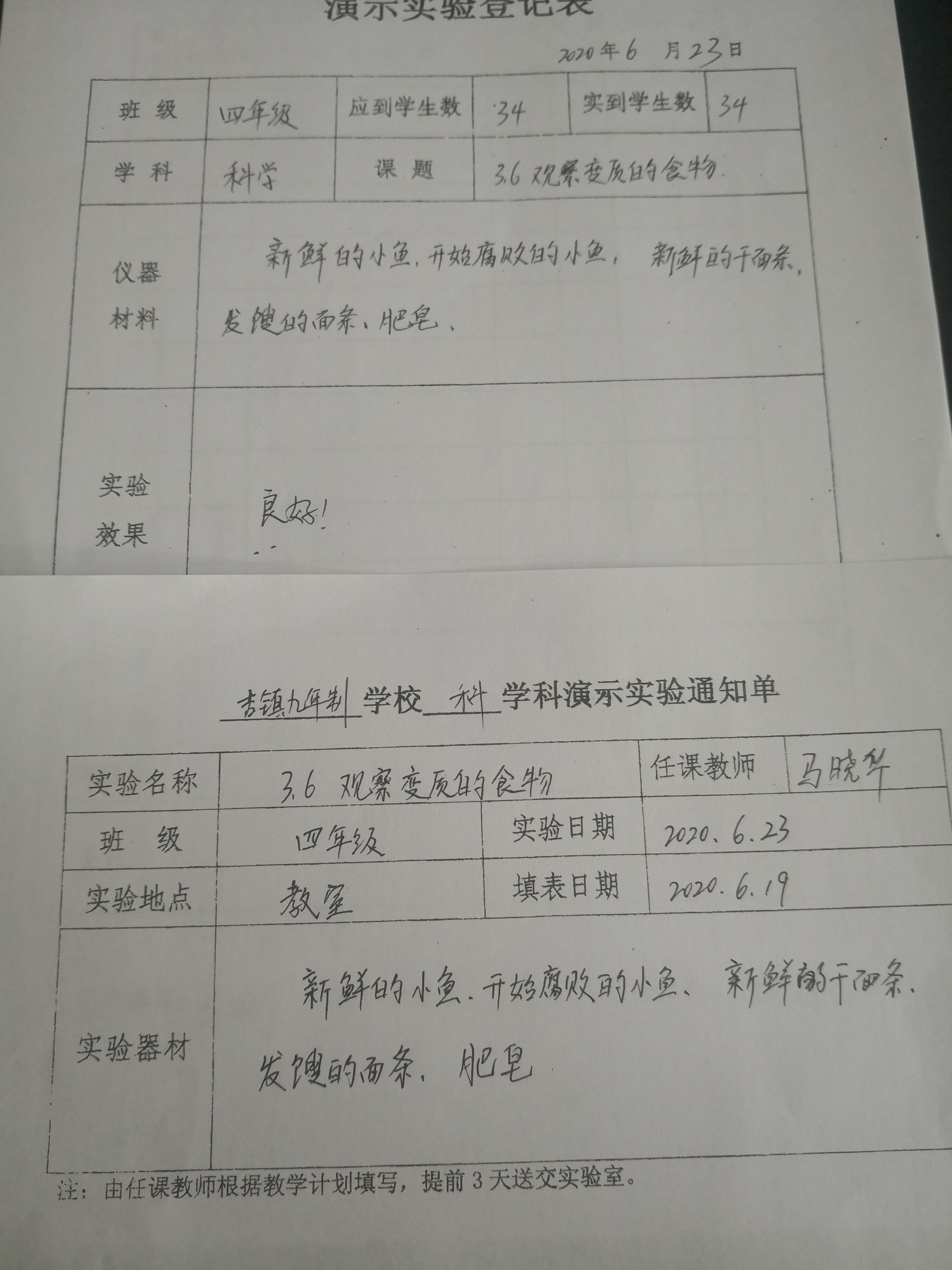 实验登记表