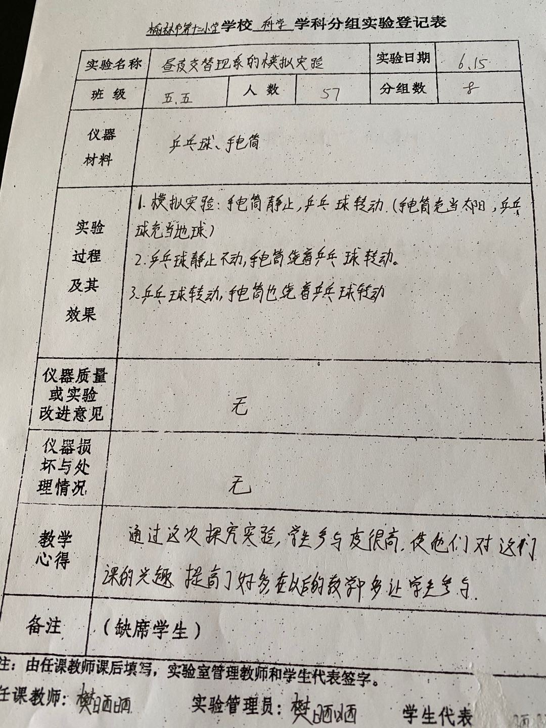 实验登记表