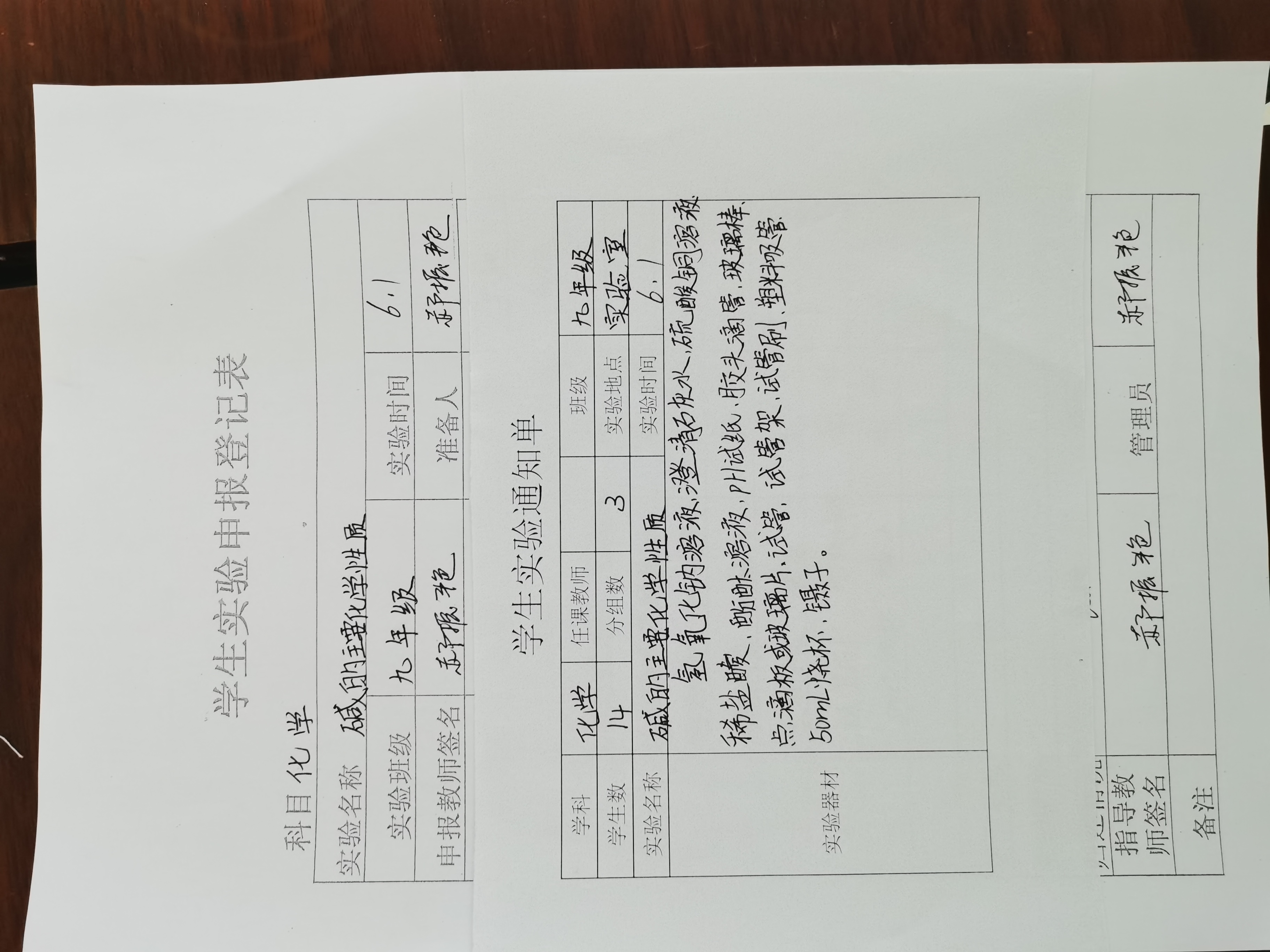 实验登记表