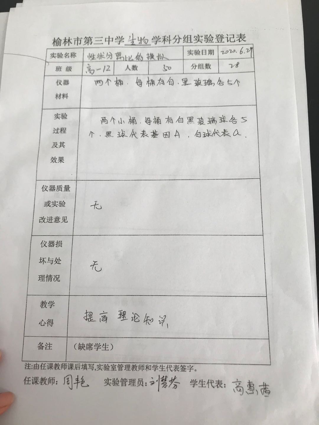 实验登记表