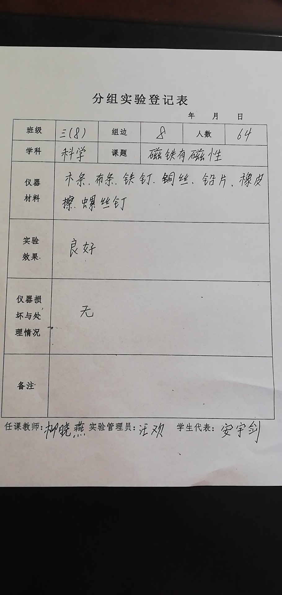 实验登记表