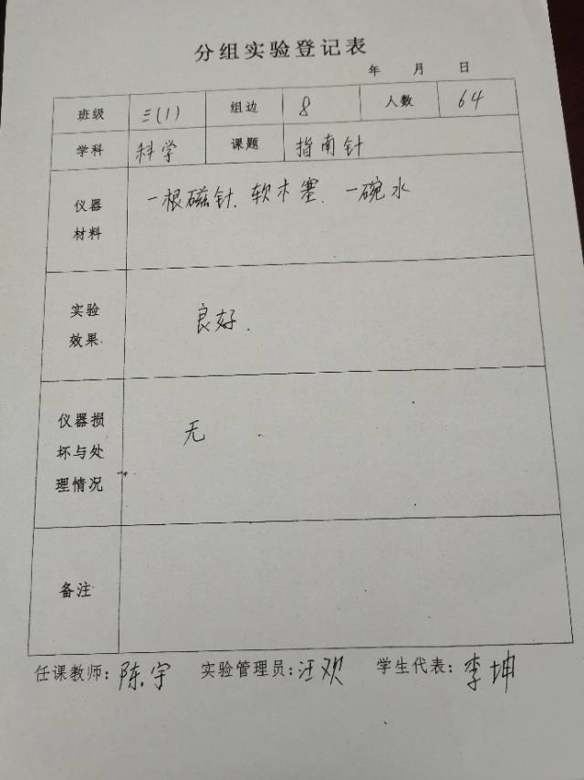 实验登记表