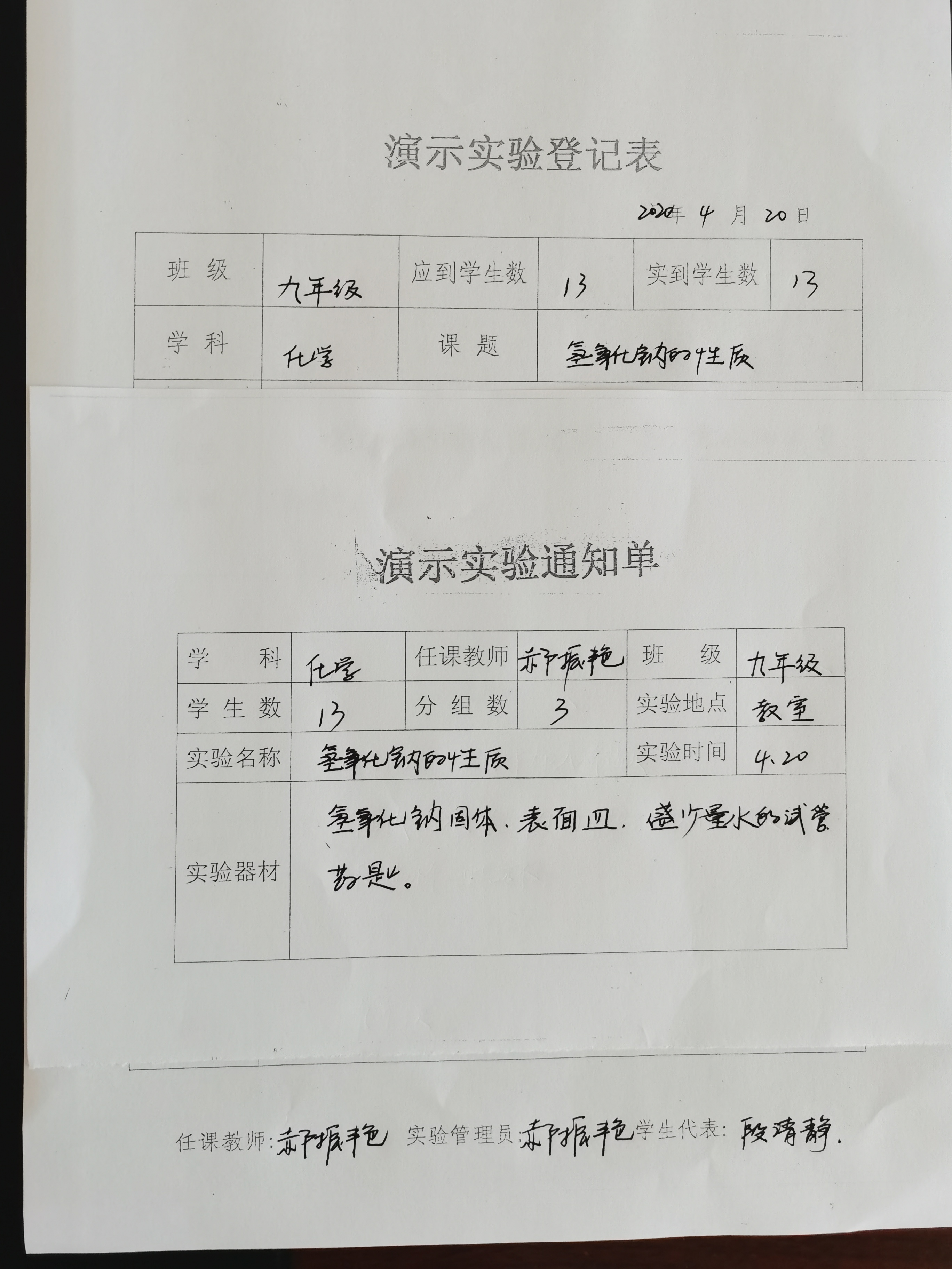 实验登记表
