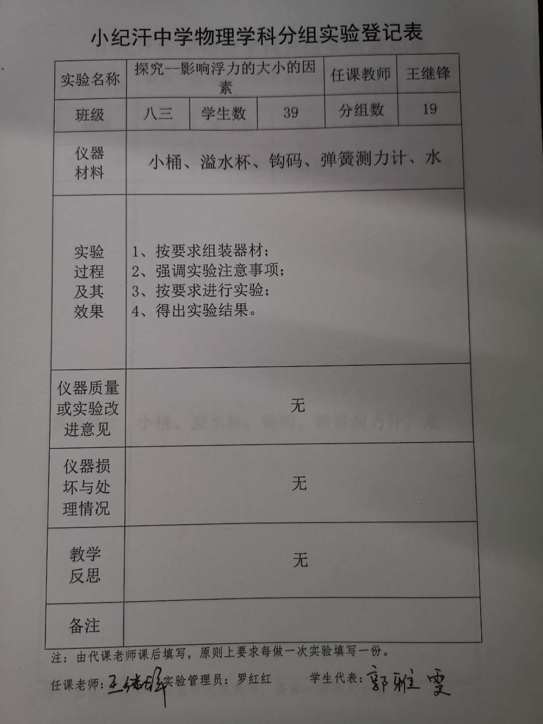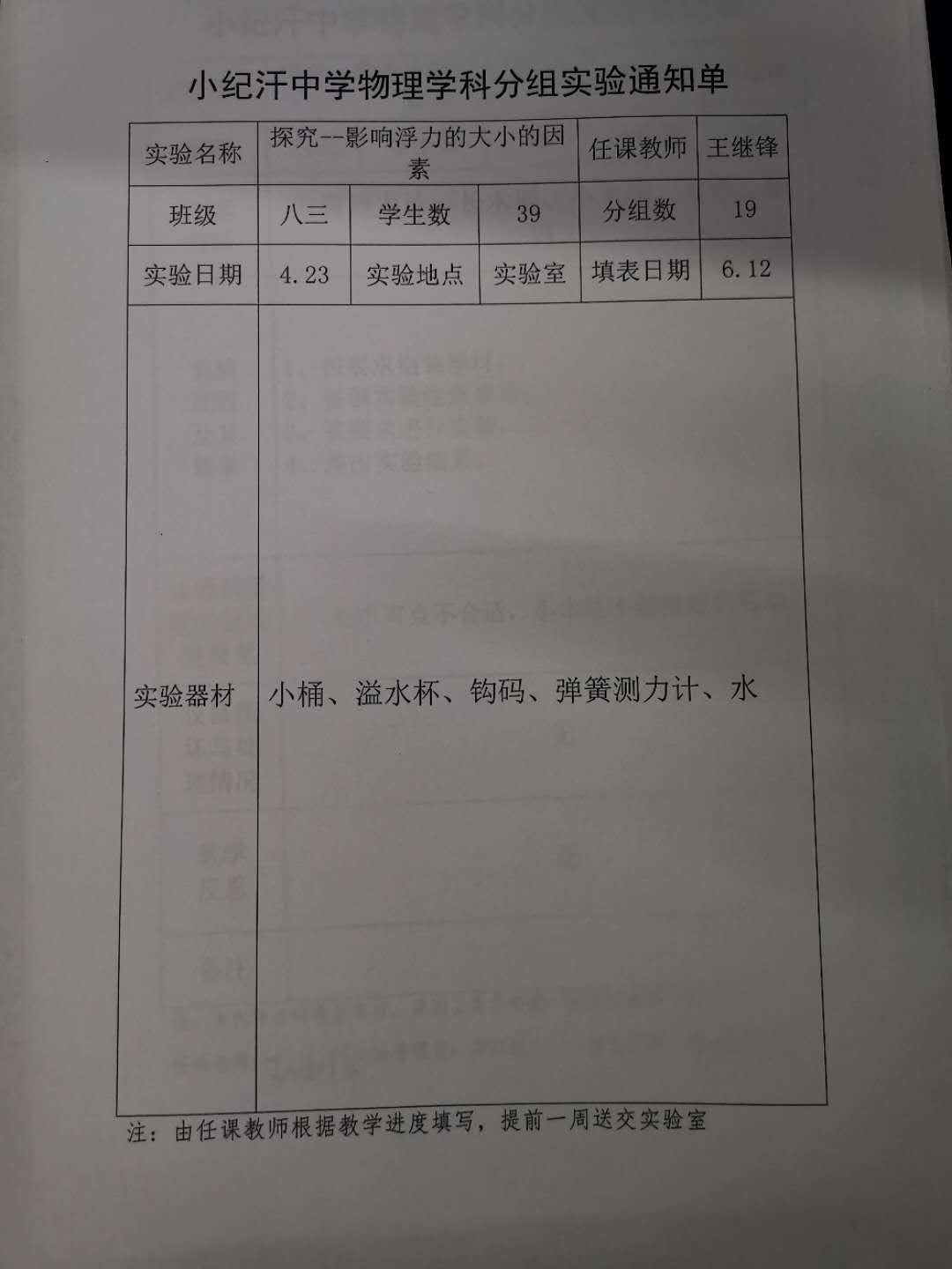 实验登记表
