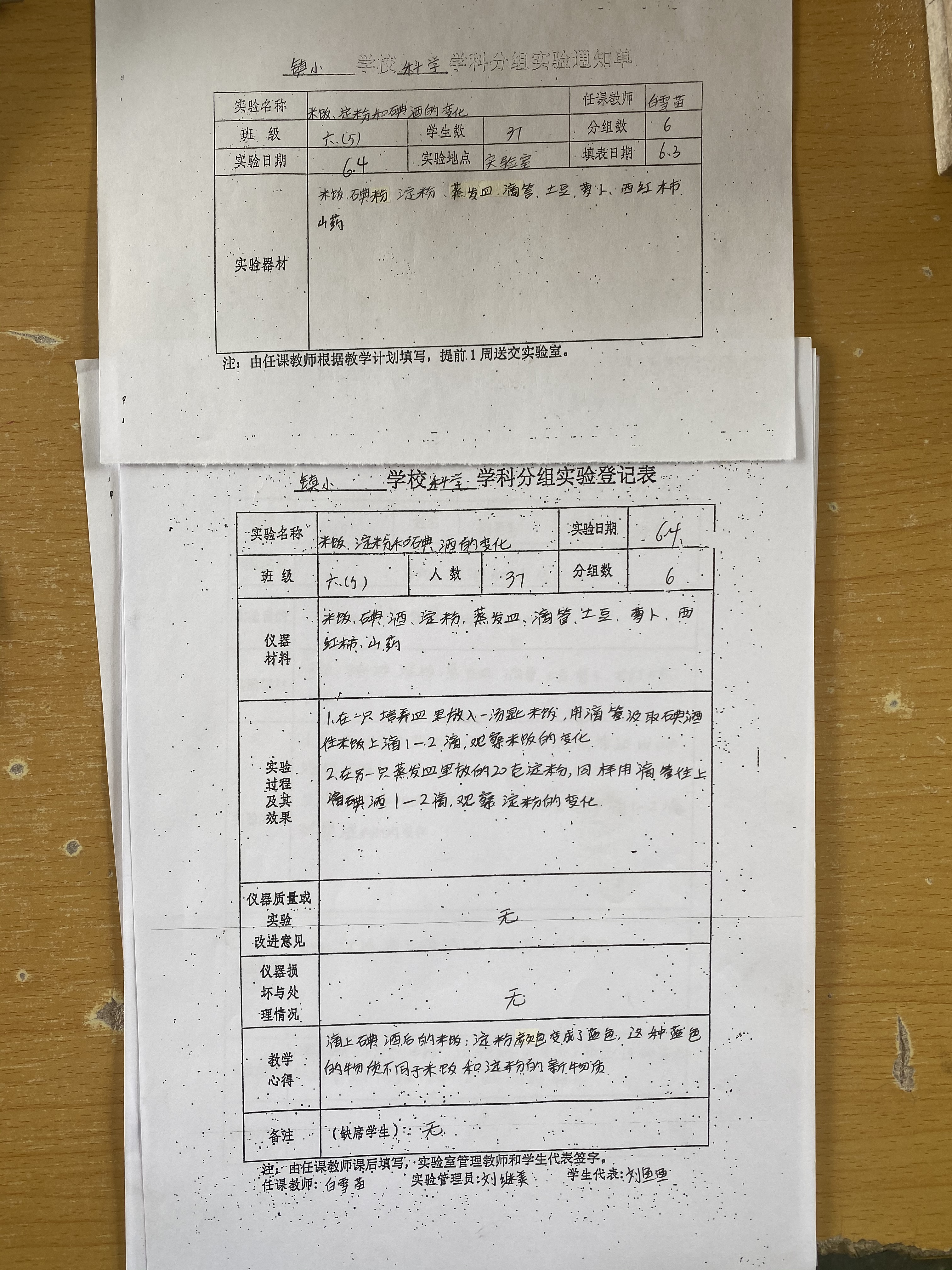 实验登记表