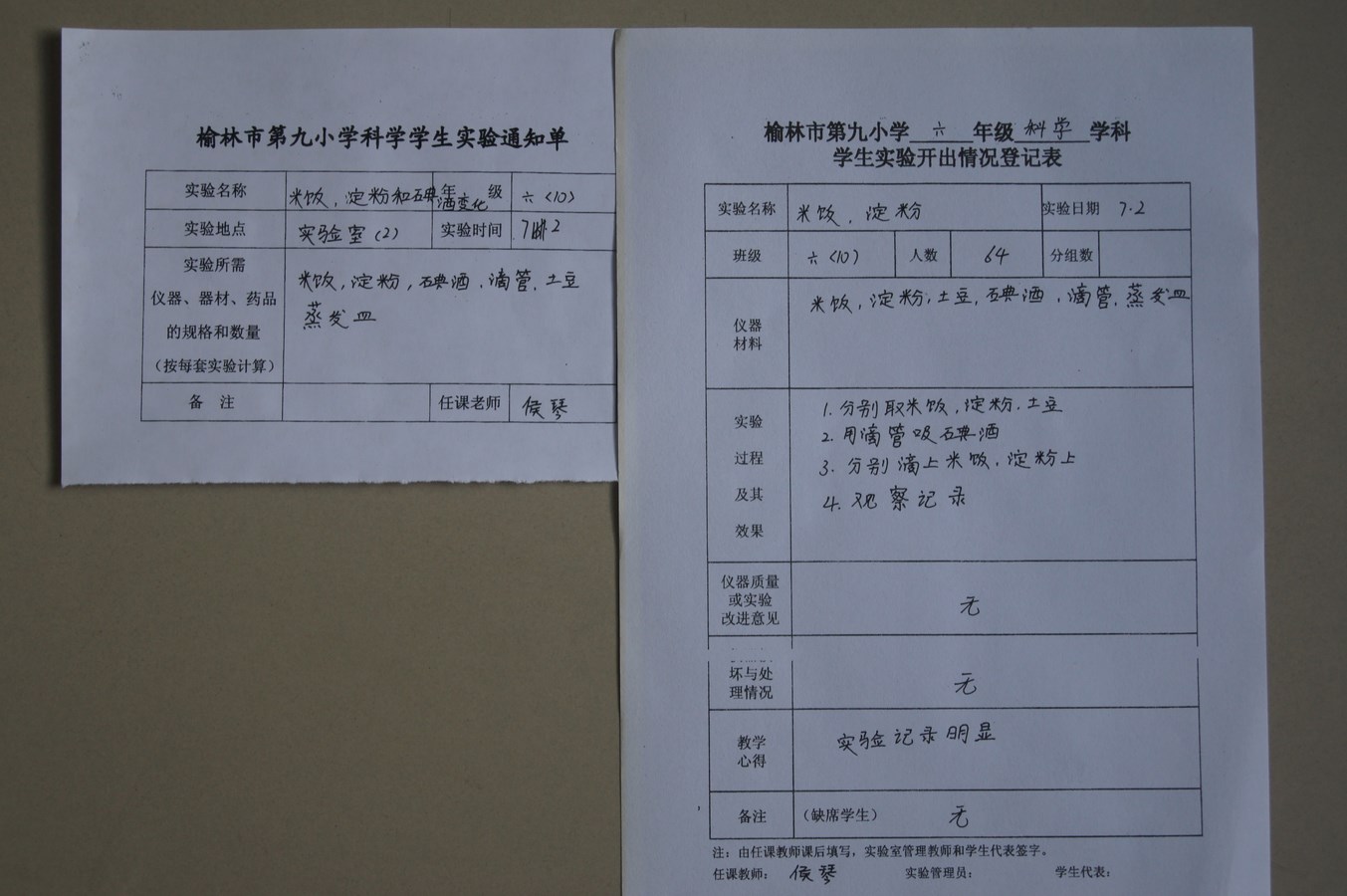 实验登记表