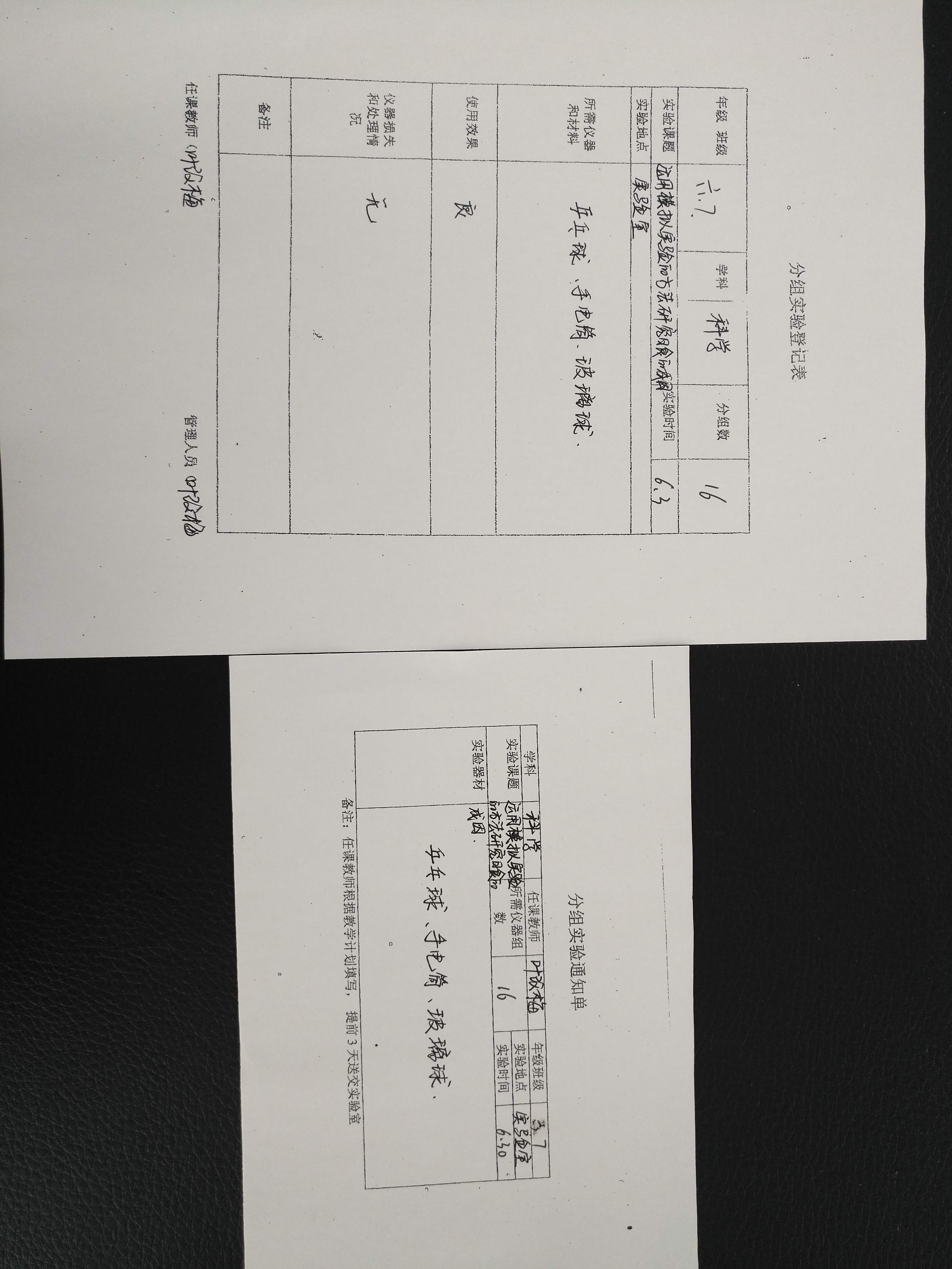 实验登记表