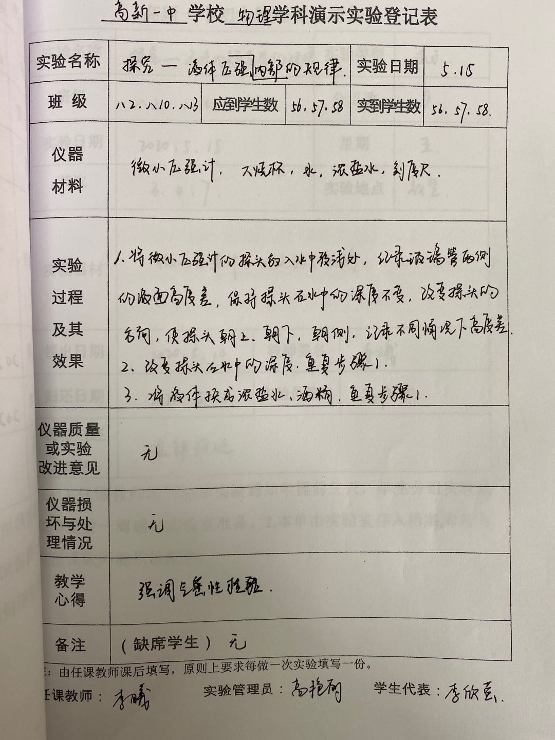 实验登记表