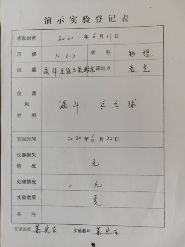 实验登记表