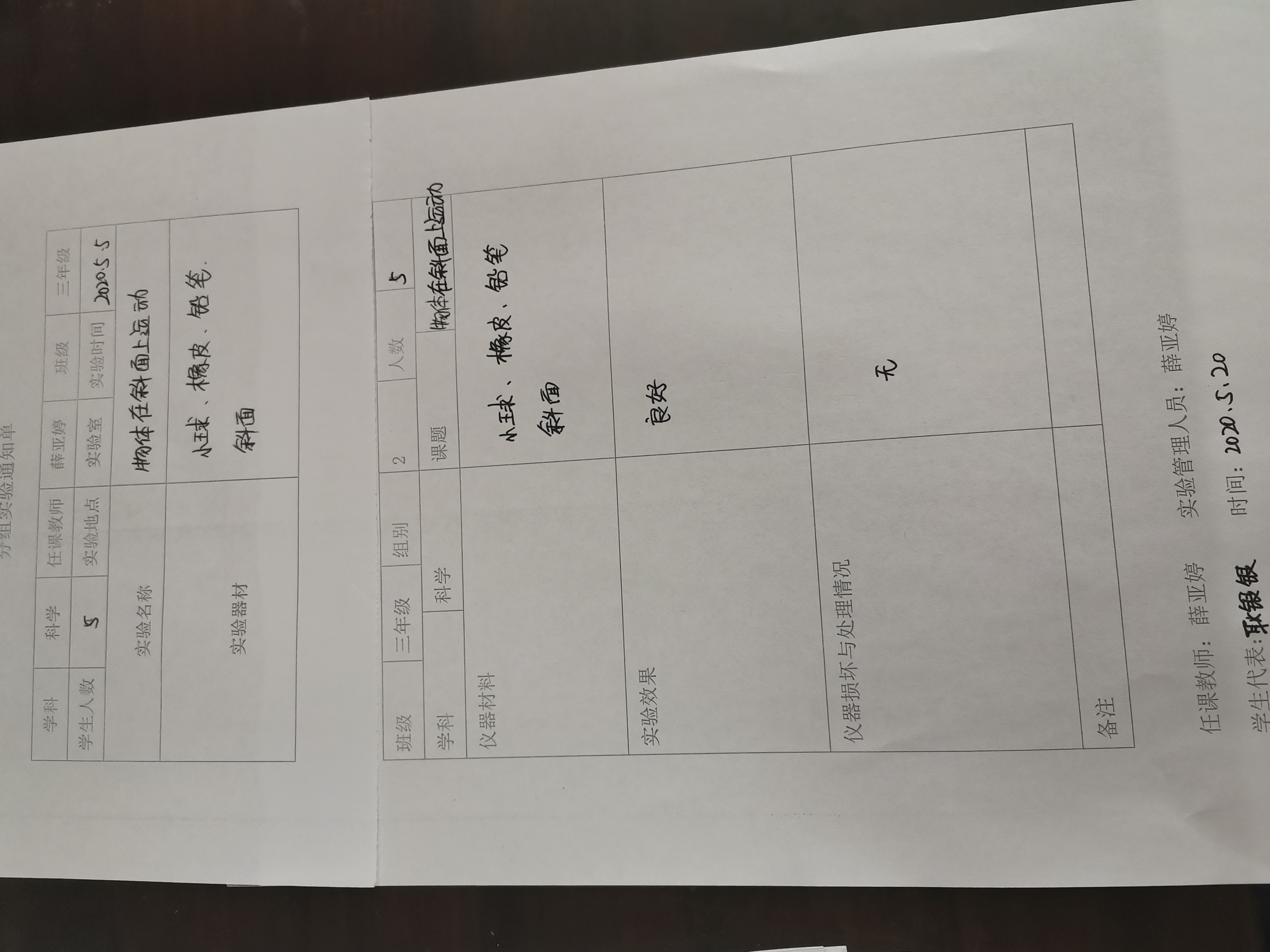 实验登记表