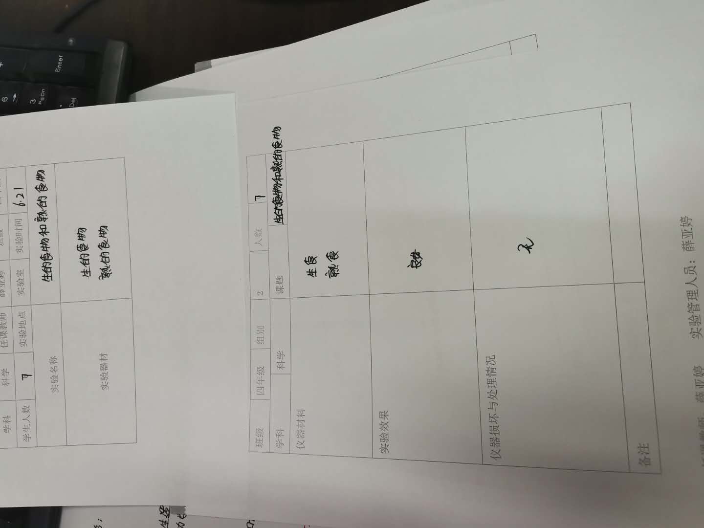 实验登记表