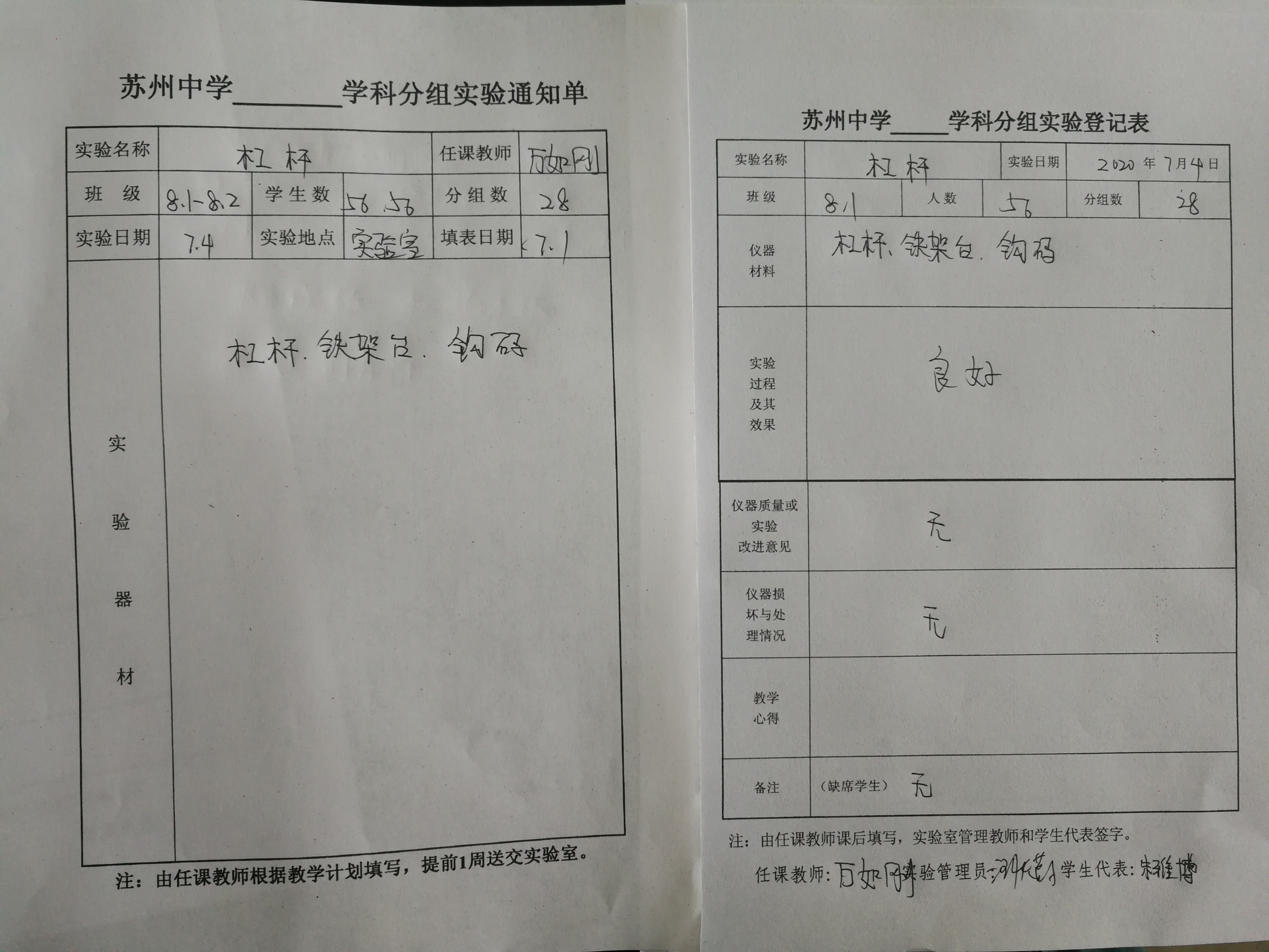 实验登记表