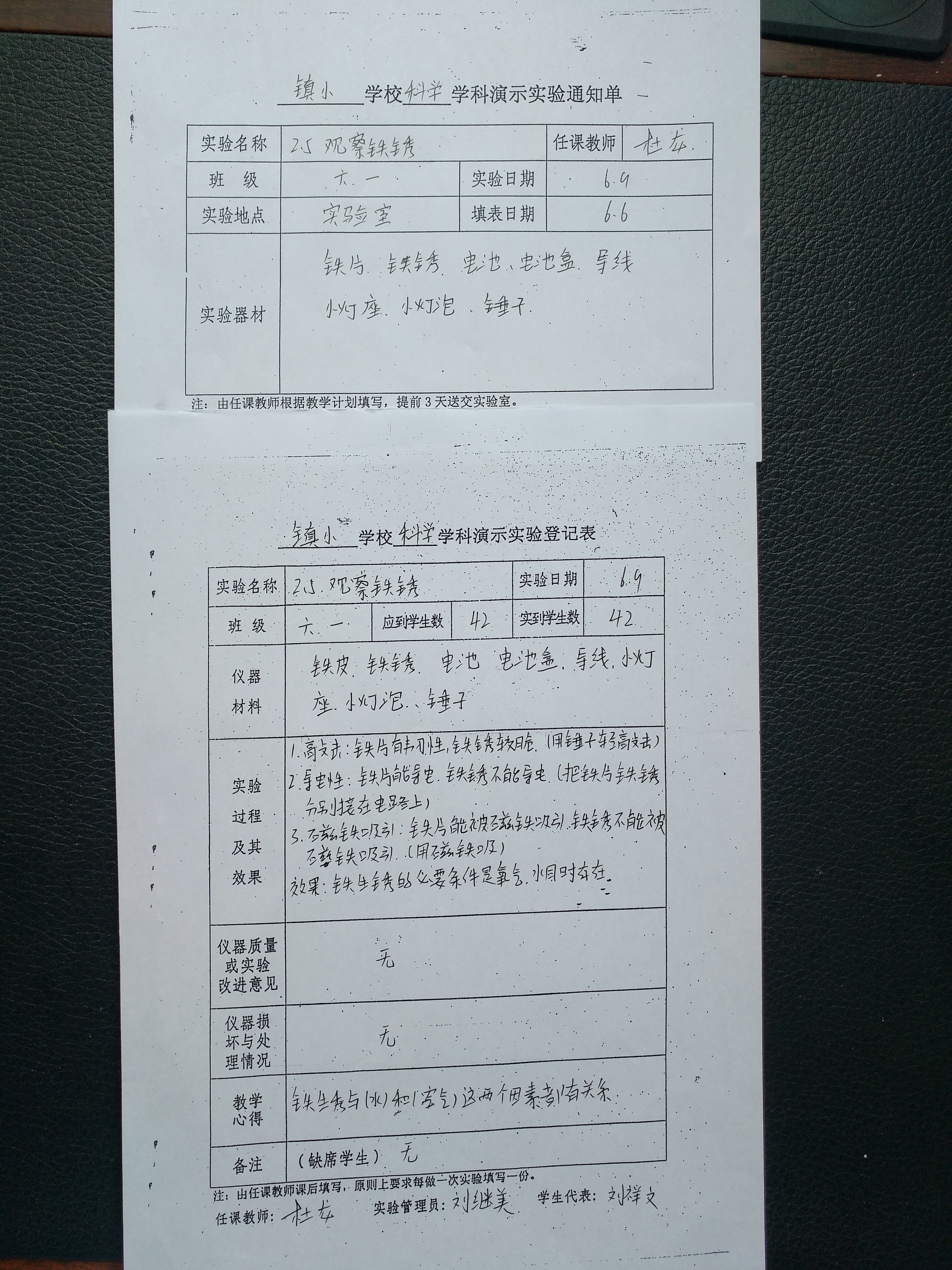 实验登记表