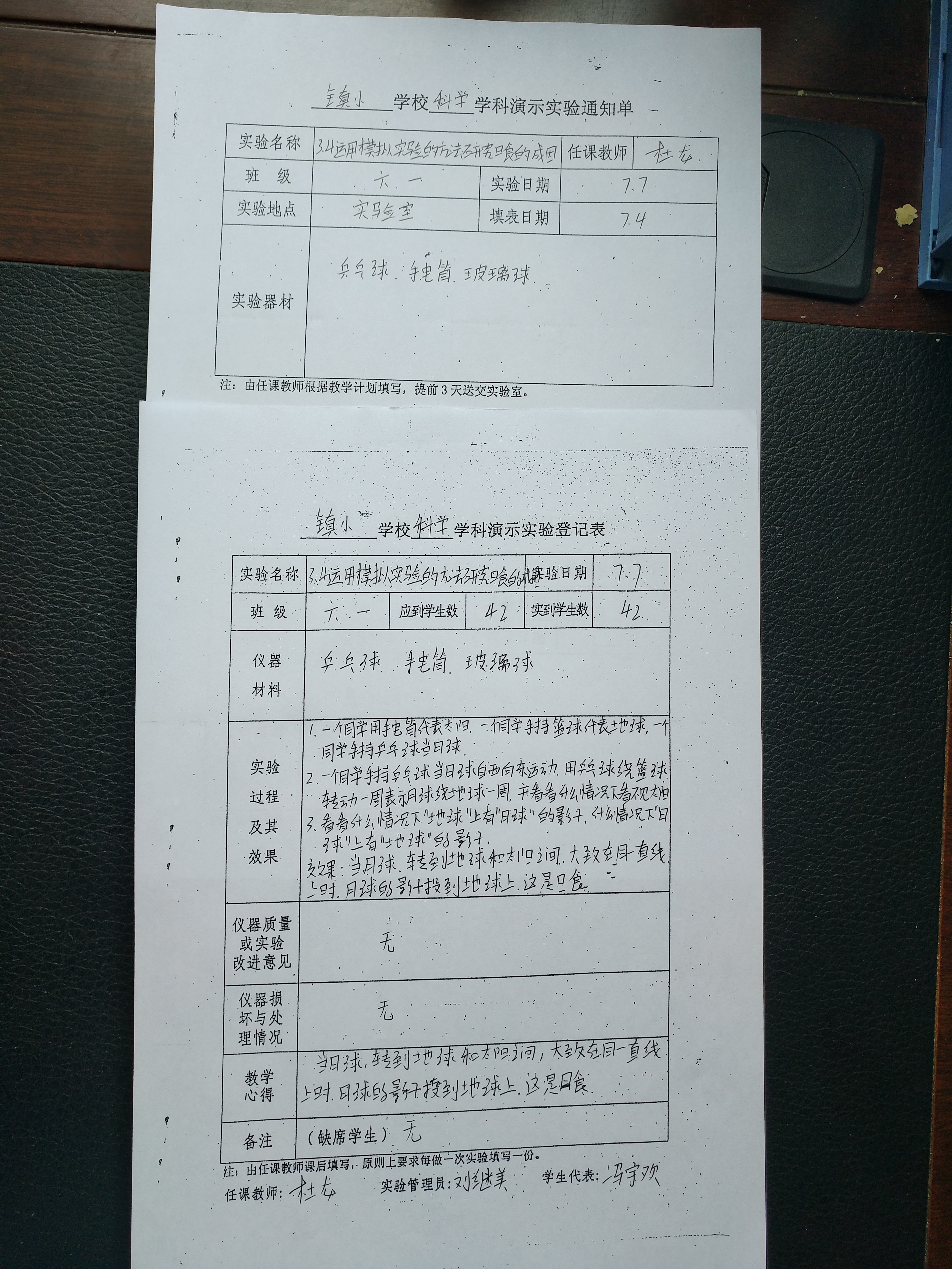 实验登记表