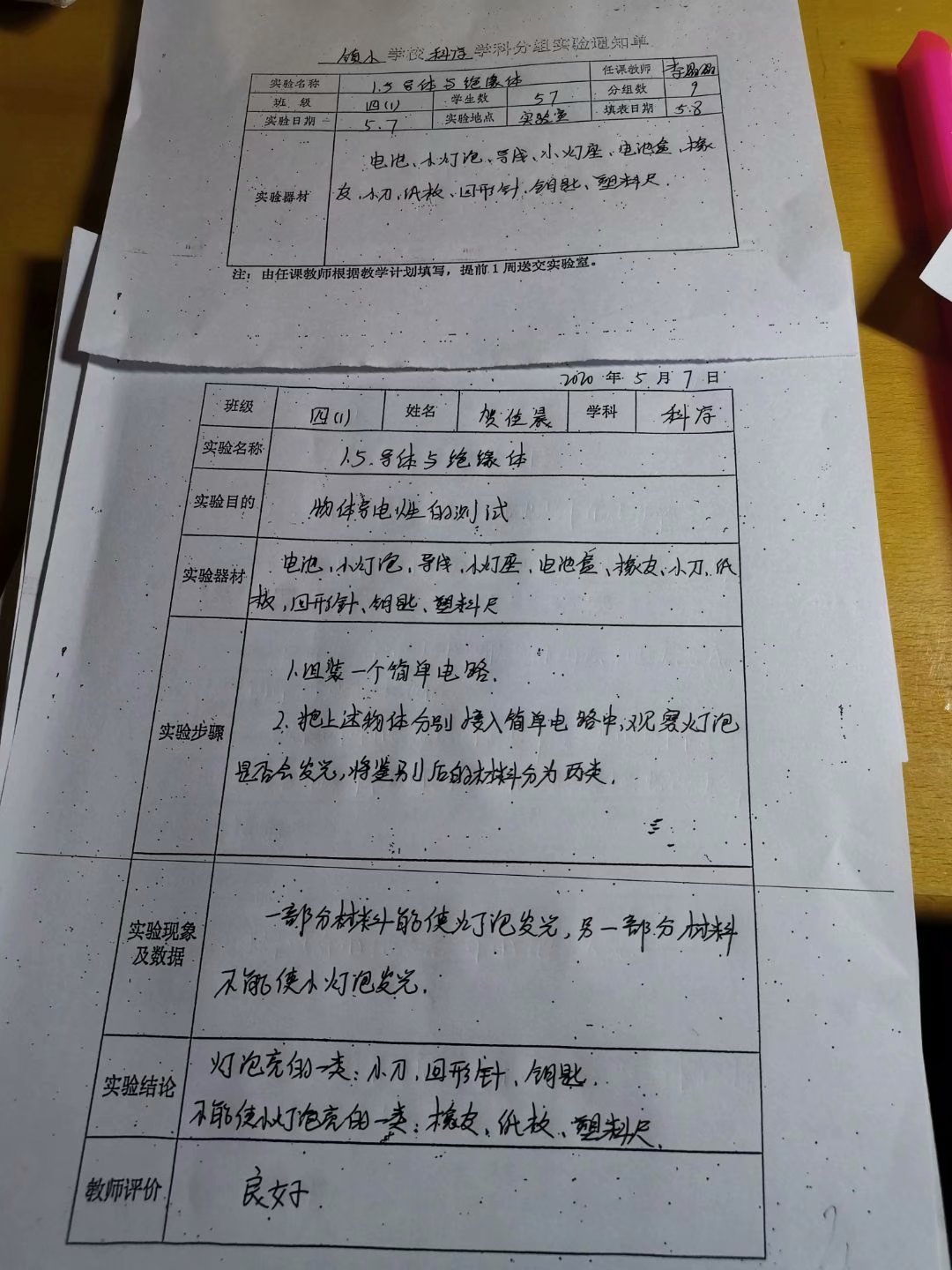 实验登记表