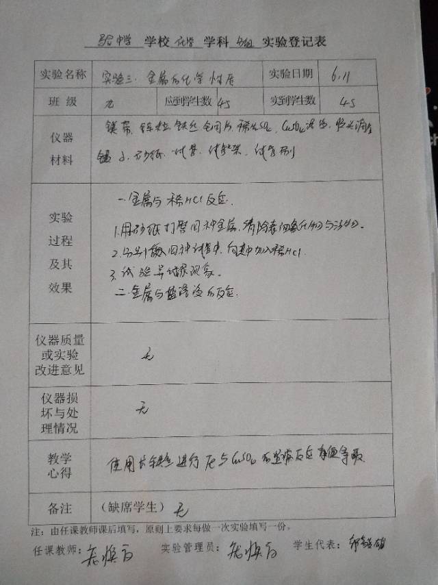 实验登记表