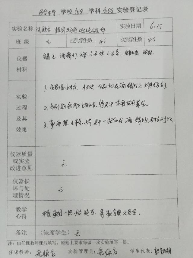 实验登记表