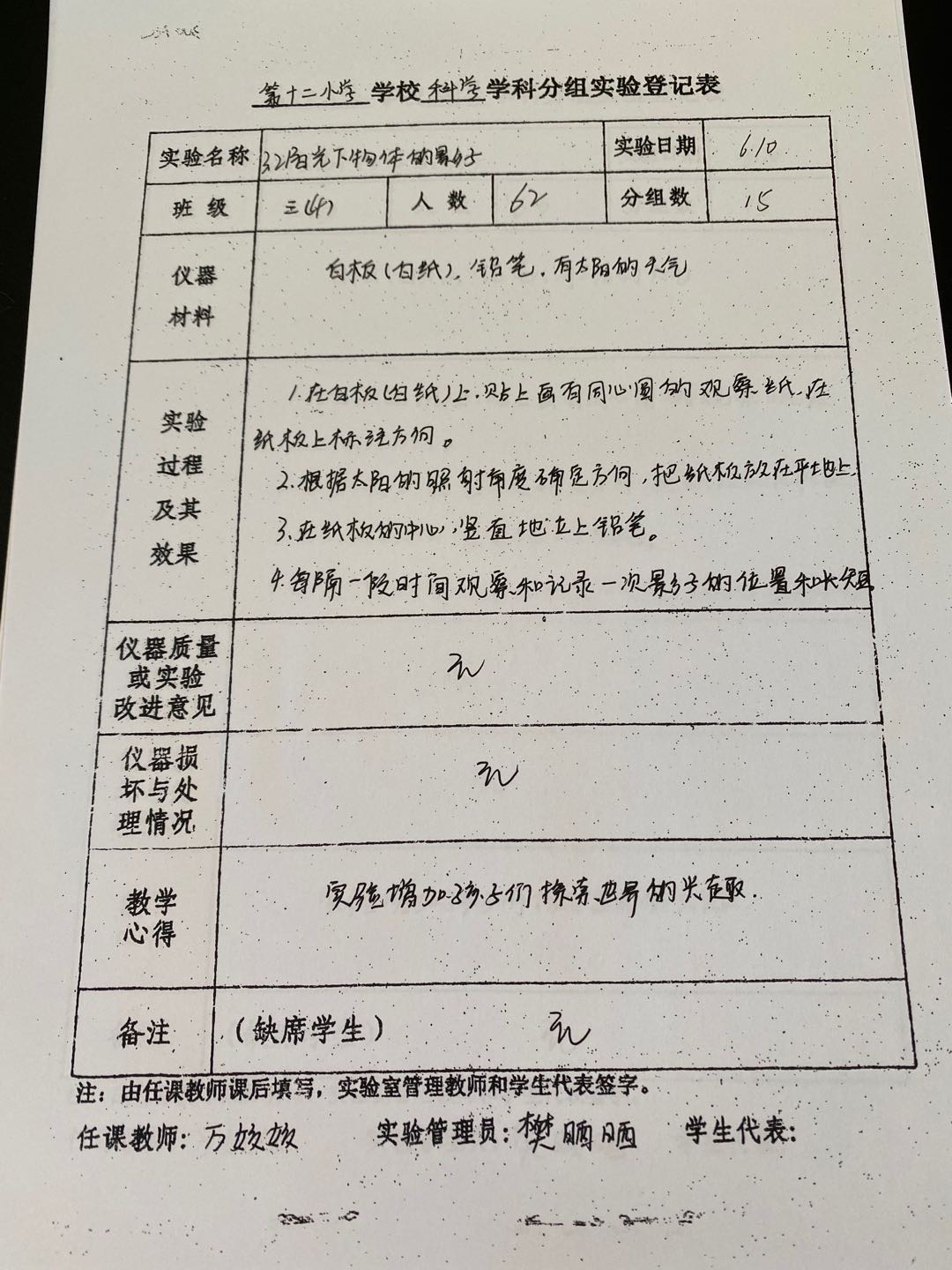 实验登记表