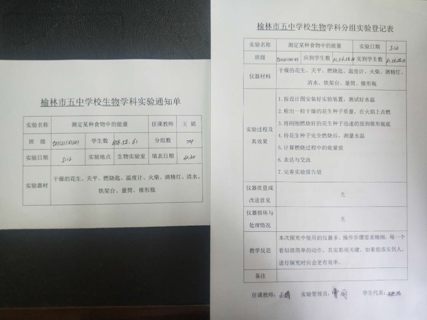 实验登记表