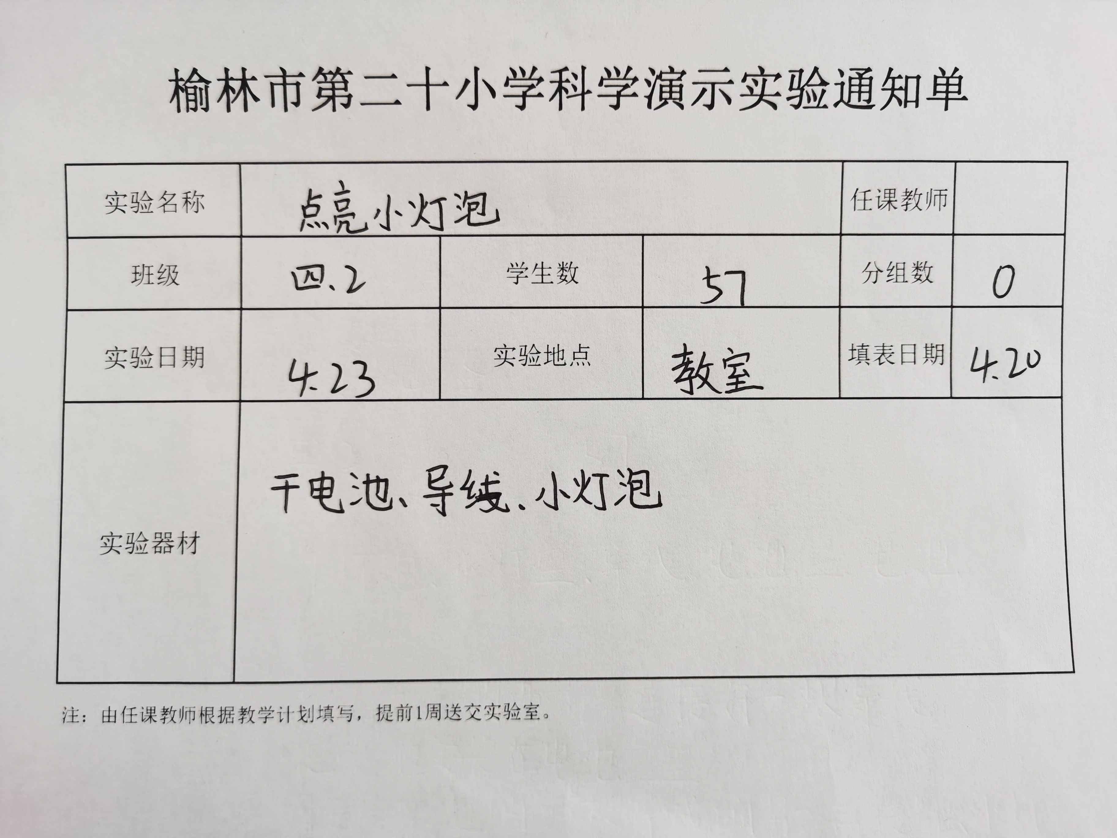 实验登记表