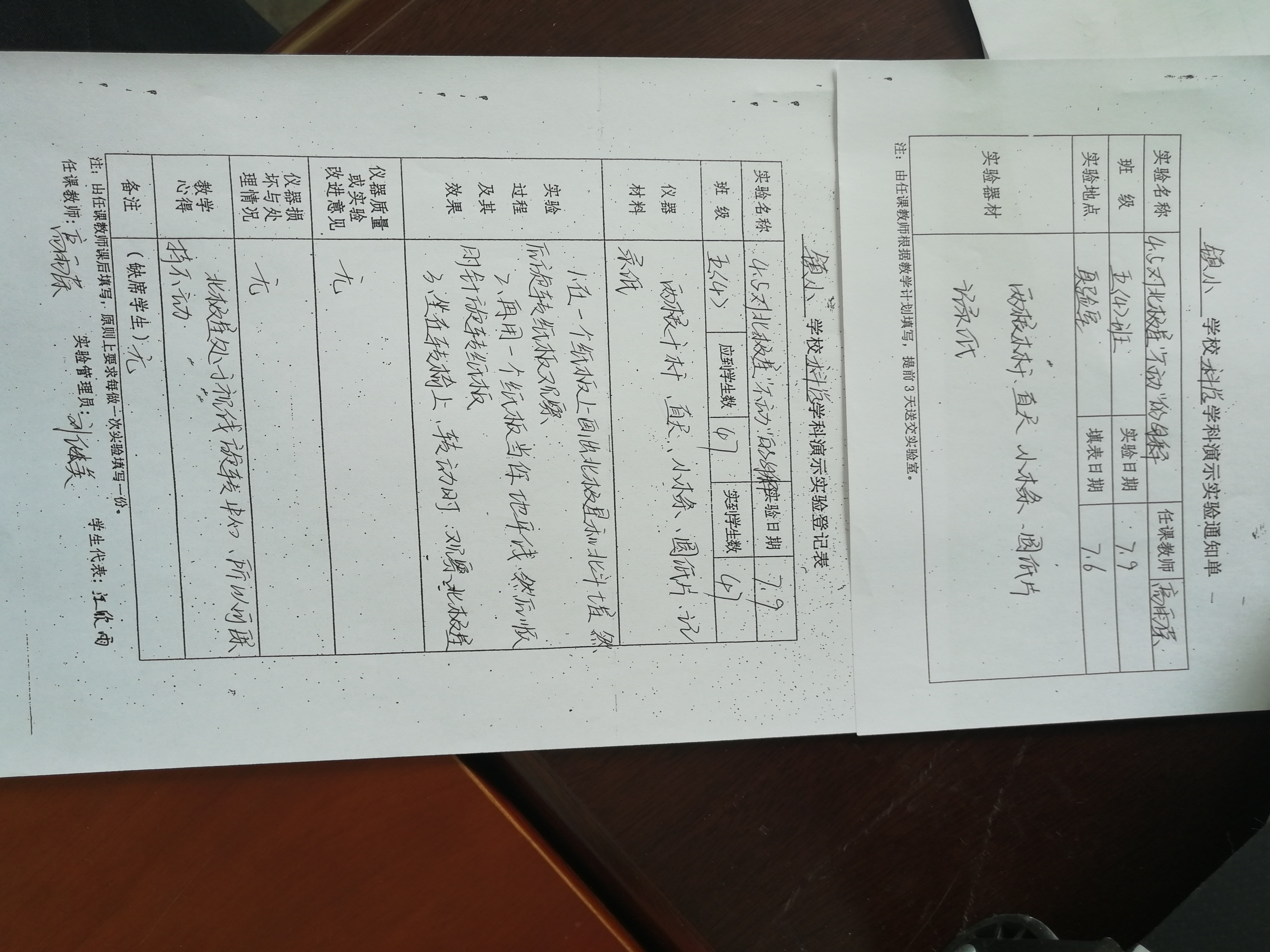 实验登记表