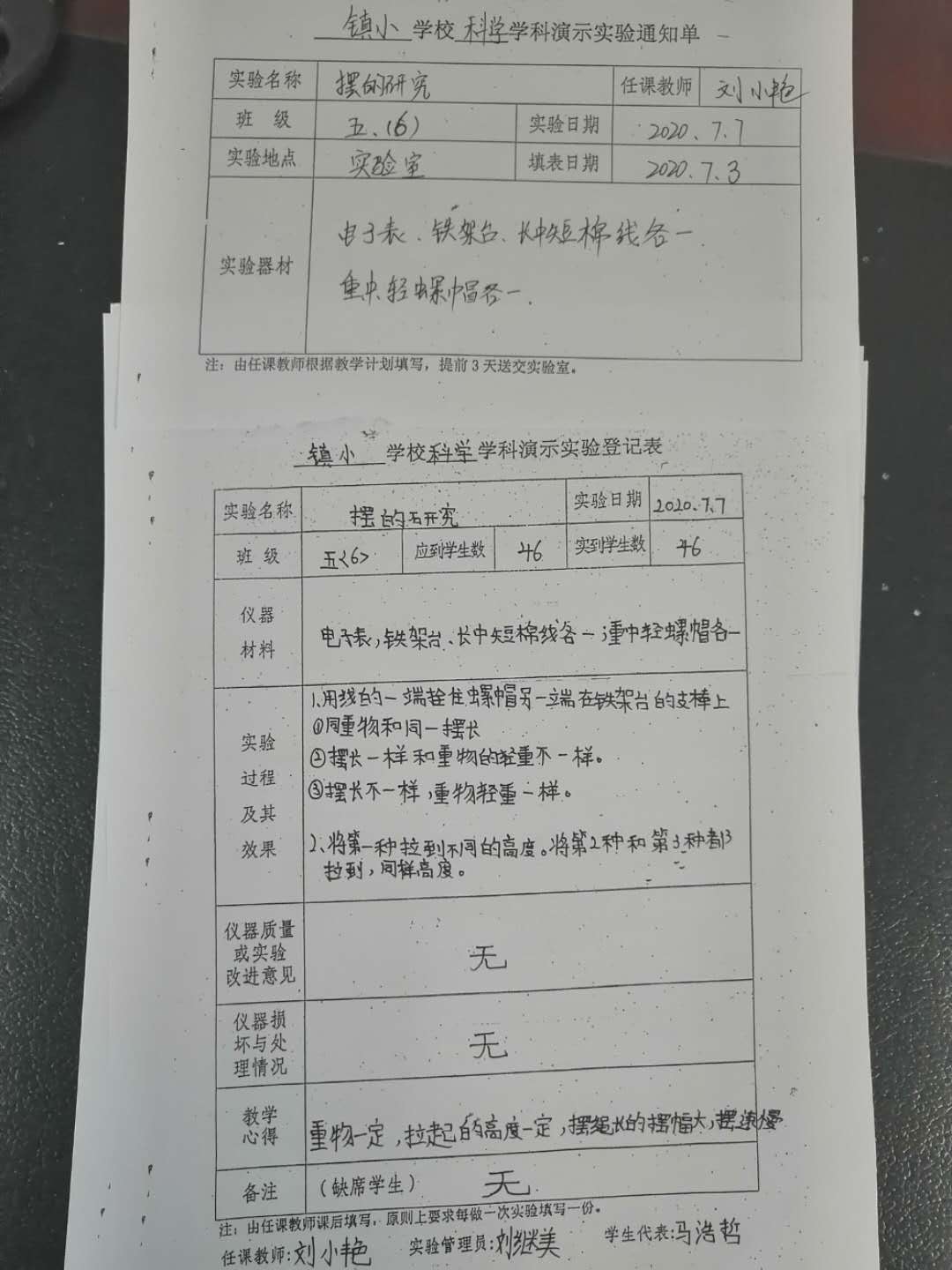 实验登记表